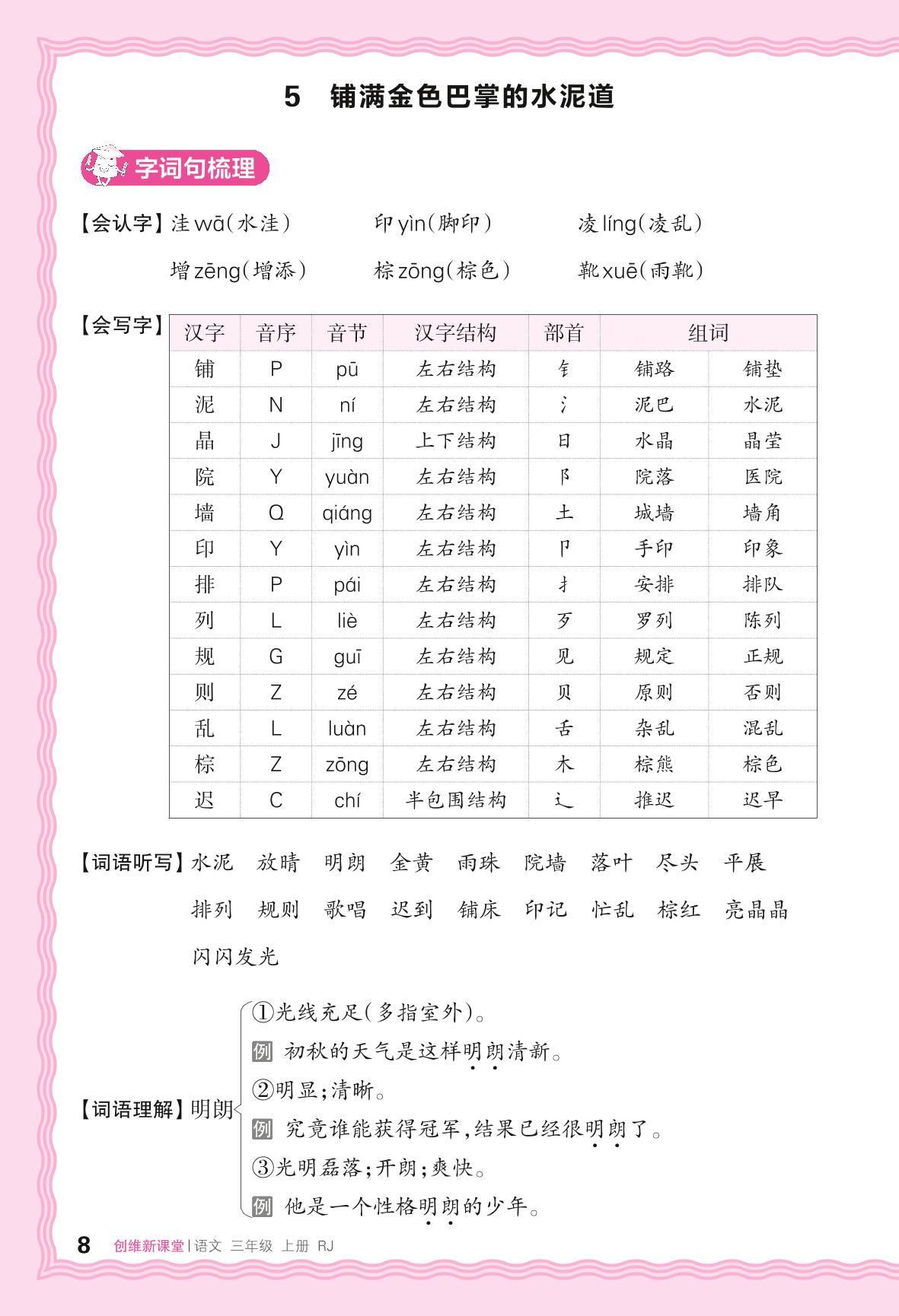2024秋上册三年级语文人教版 助学手册 第二单元——5. 铺满金色巴掌的水泥道