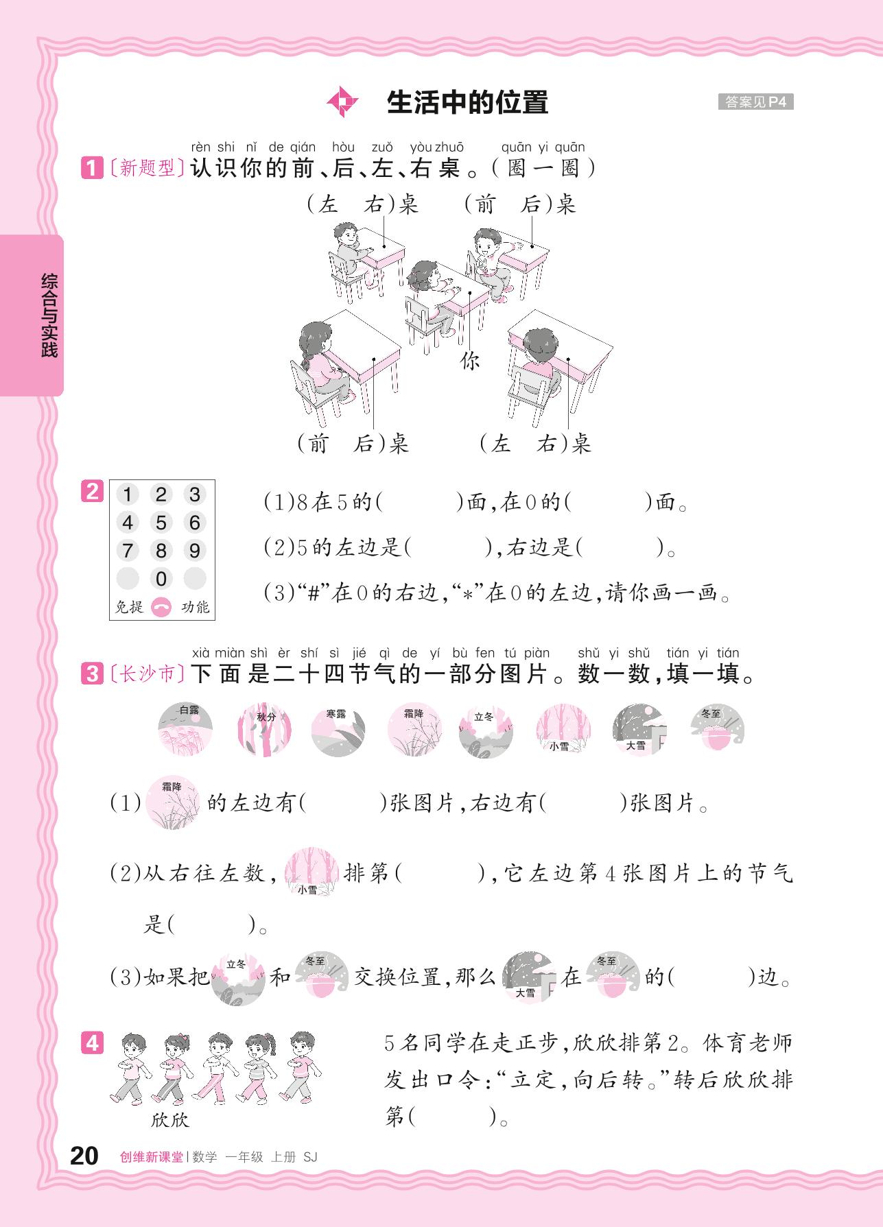 2024秋上册一年级数学苏教版 第一单元 0~5的认识和加减法——生活中的位置