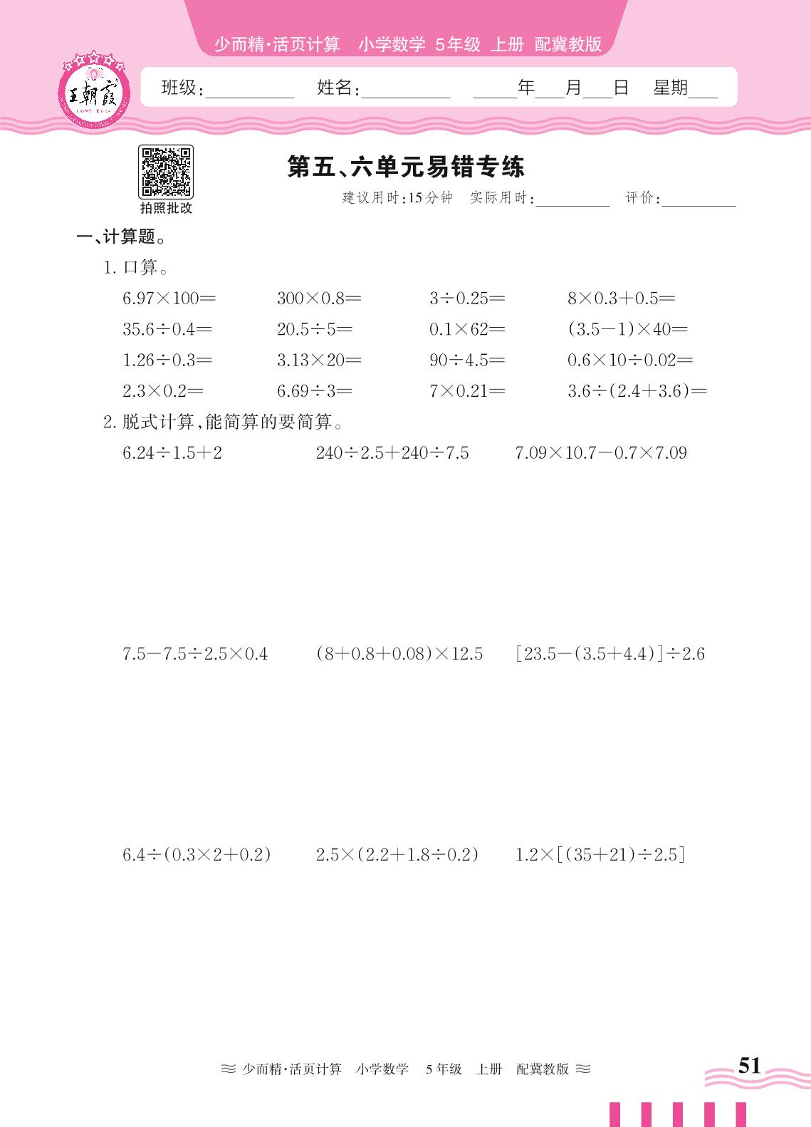 2024秋上册五年级数学冀教版 第五、六单元易错专练