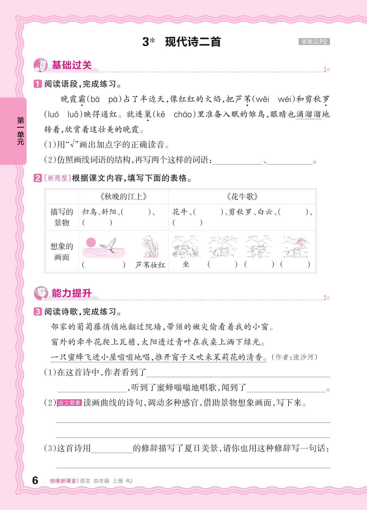2024秋上册四年级语文人教版 第一单元 自然之美——3. 现代诗二首