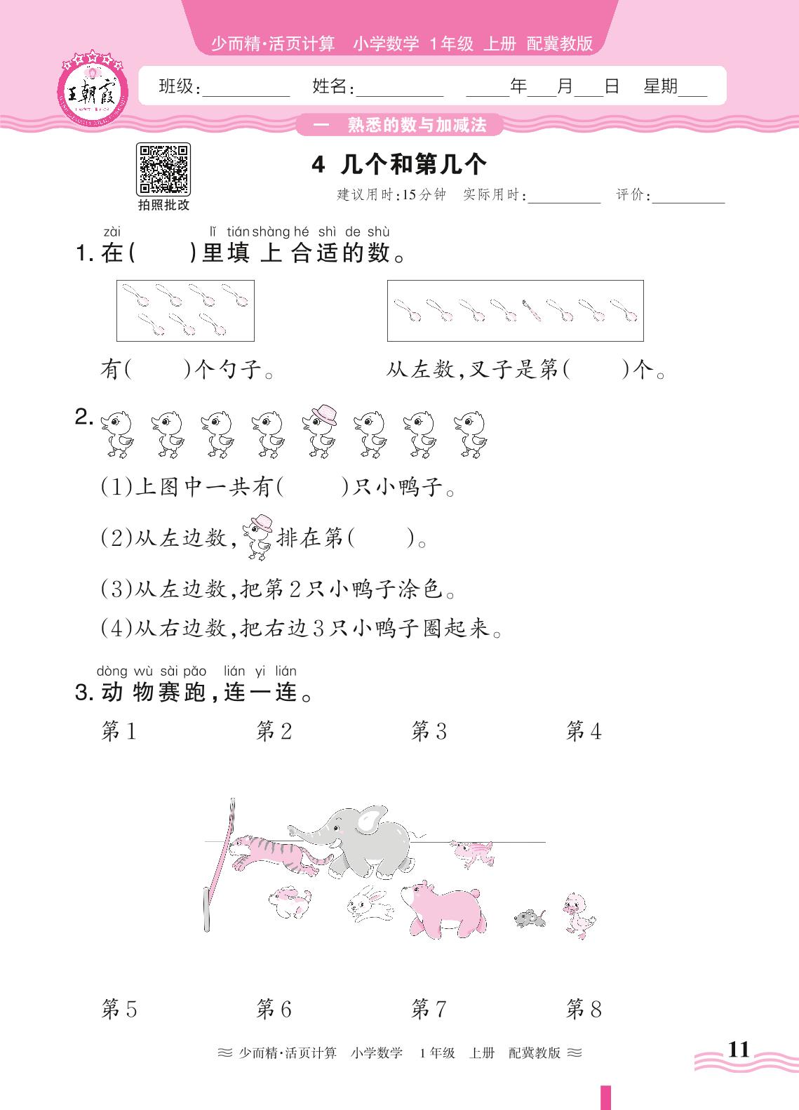 2024秋上册一年级数学冀教版 第一单元 熟悉的数与加减法——4. 几个和第几个