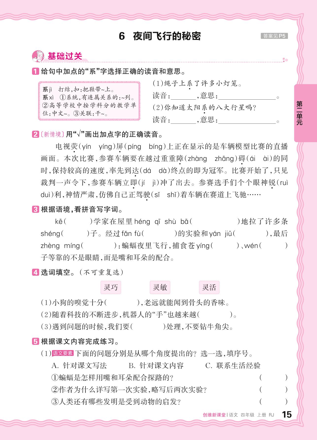 2024秋上册四年级语文人教版 第二单元 提问——6. 夜间飞行的秘密