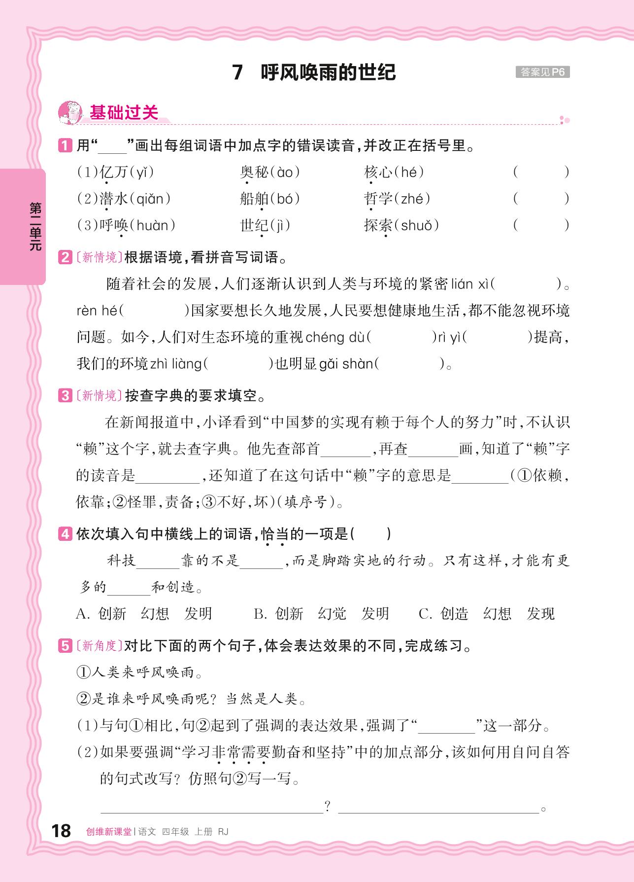 2024秋上册四年级语文人教版 第二单元 提问——7. 呼风唤雨的世纪