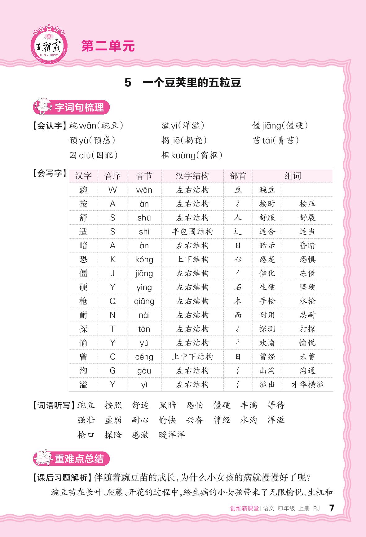 2024秋上册四年级语文人教版 助学手册 第二单元——5. 一个豆荚里的五粒豆