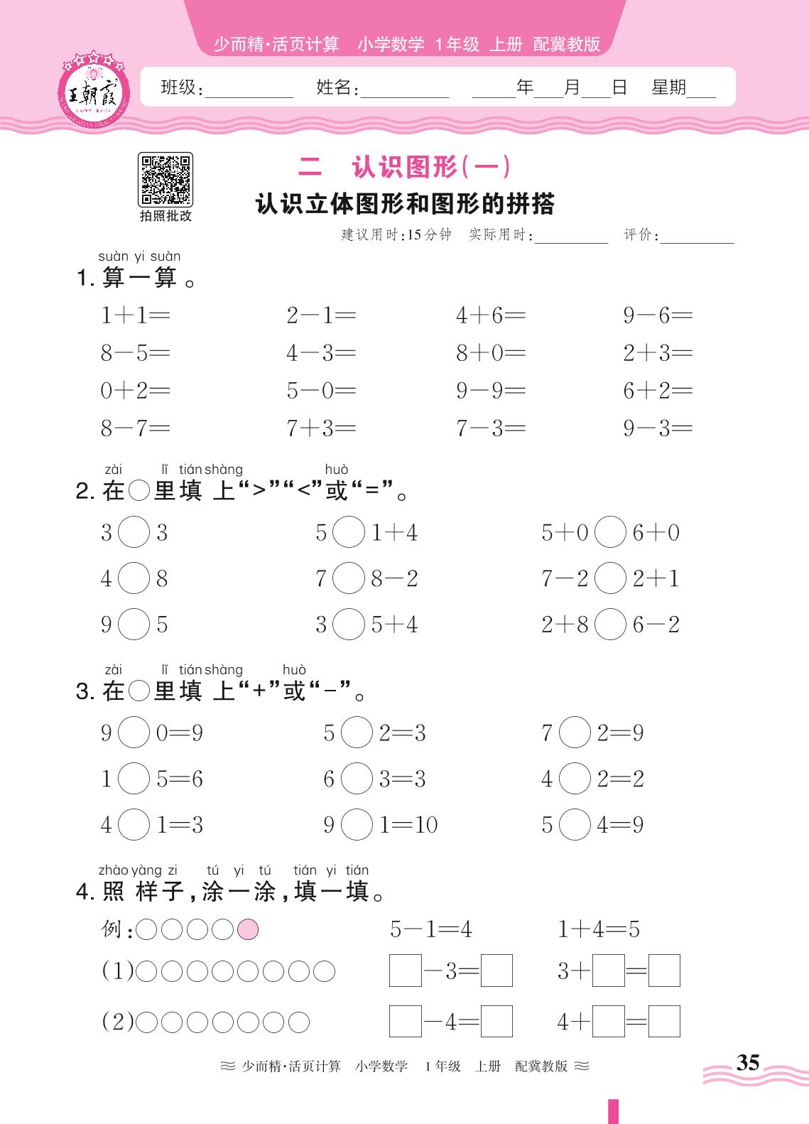 2024秋上册一年级数学冀教版 第二单元 认识图形(一)——认识立体图形和图形的拼搭