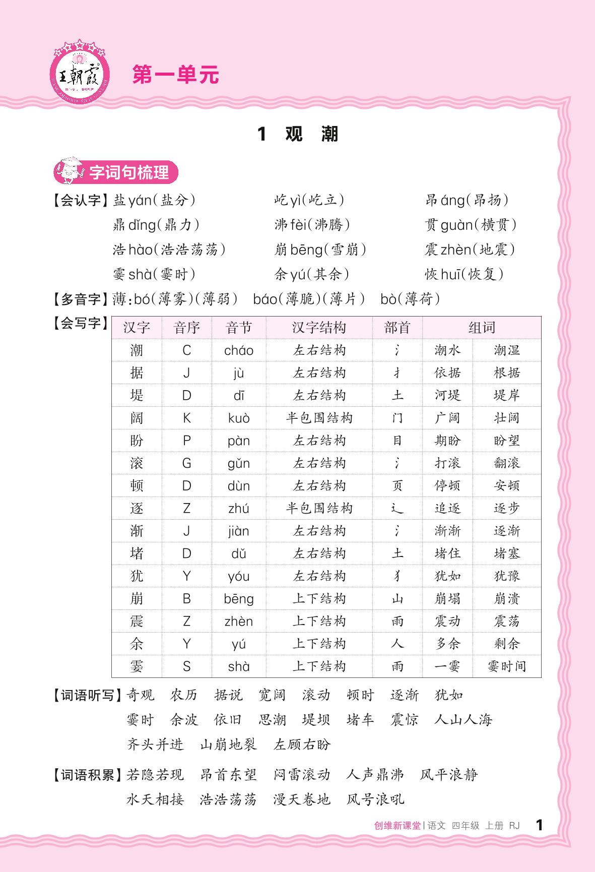 2024秋上册四年级语文人教版 助学手册 第一单元——1. 观潮