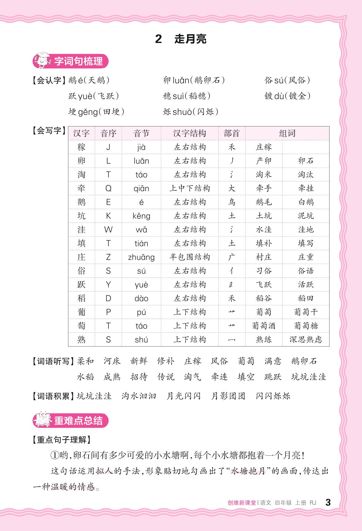 2024秋上册四年级语文人教版 助学手册 第一单元——2. 走月亮