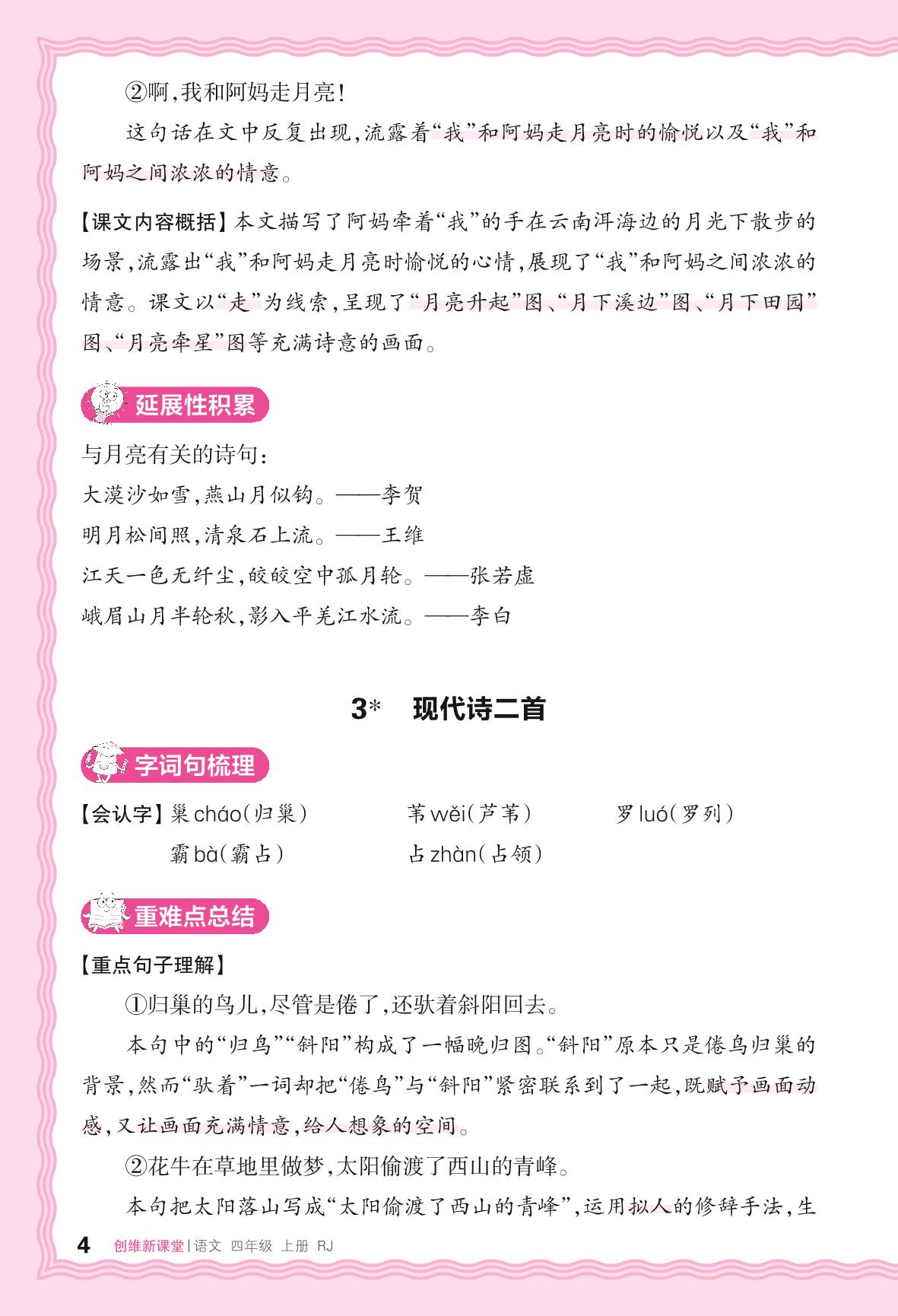 2024秋上册四年级语文人教版 助学手册 第一单元——3. 现代诗二首