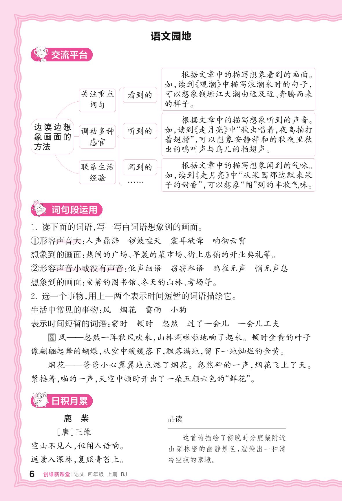 2024秋上册四年级语文人教版 助学手册 第一单元——语文园地