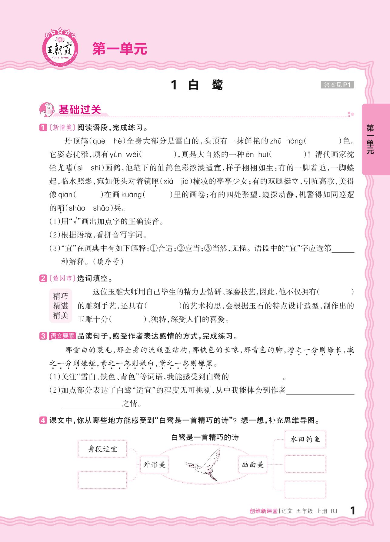 2024秋上册五年级语文人教版 第一单元 万物有灵——1. 白鹭