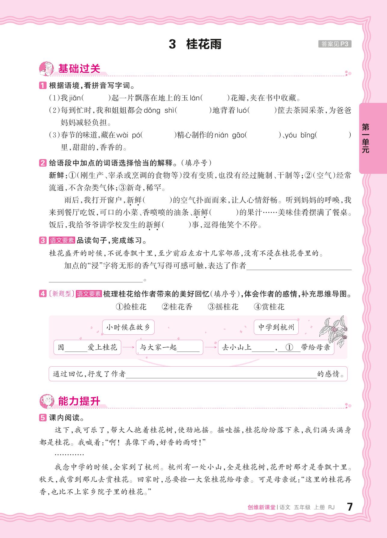 2024秋上册五年级语文人教版 第一单元 万物有灵——3. 桂花雨