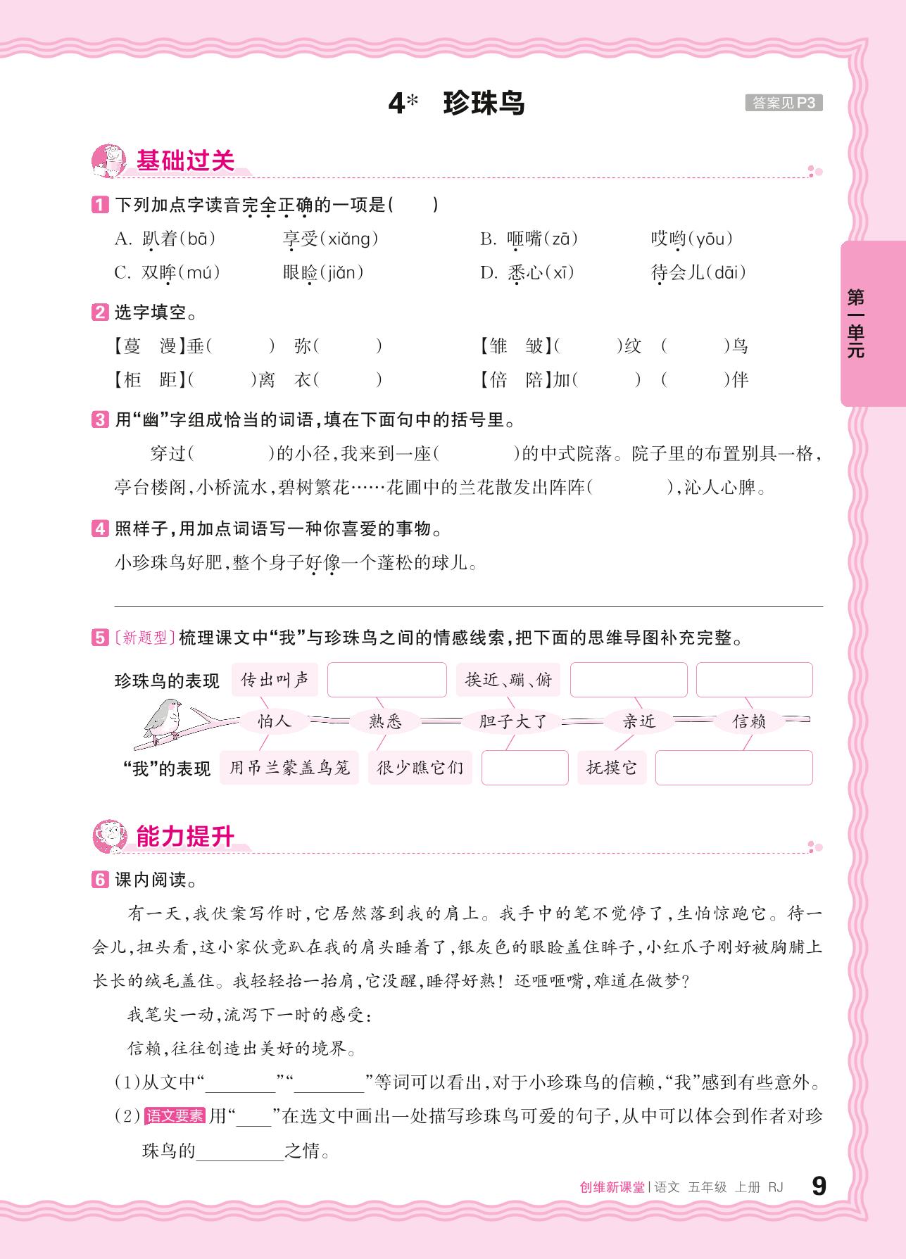 2024秋上册五年级语文人教版 第一单元 万物有灵——4. 珍珠鸟