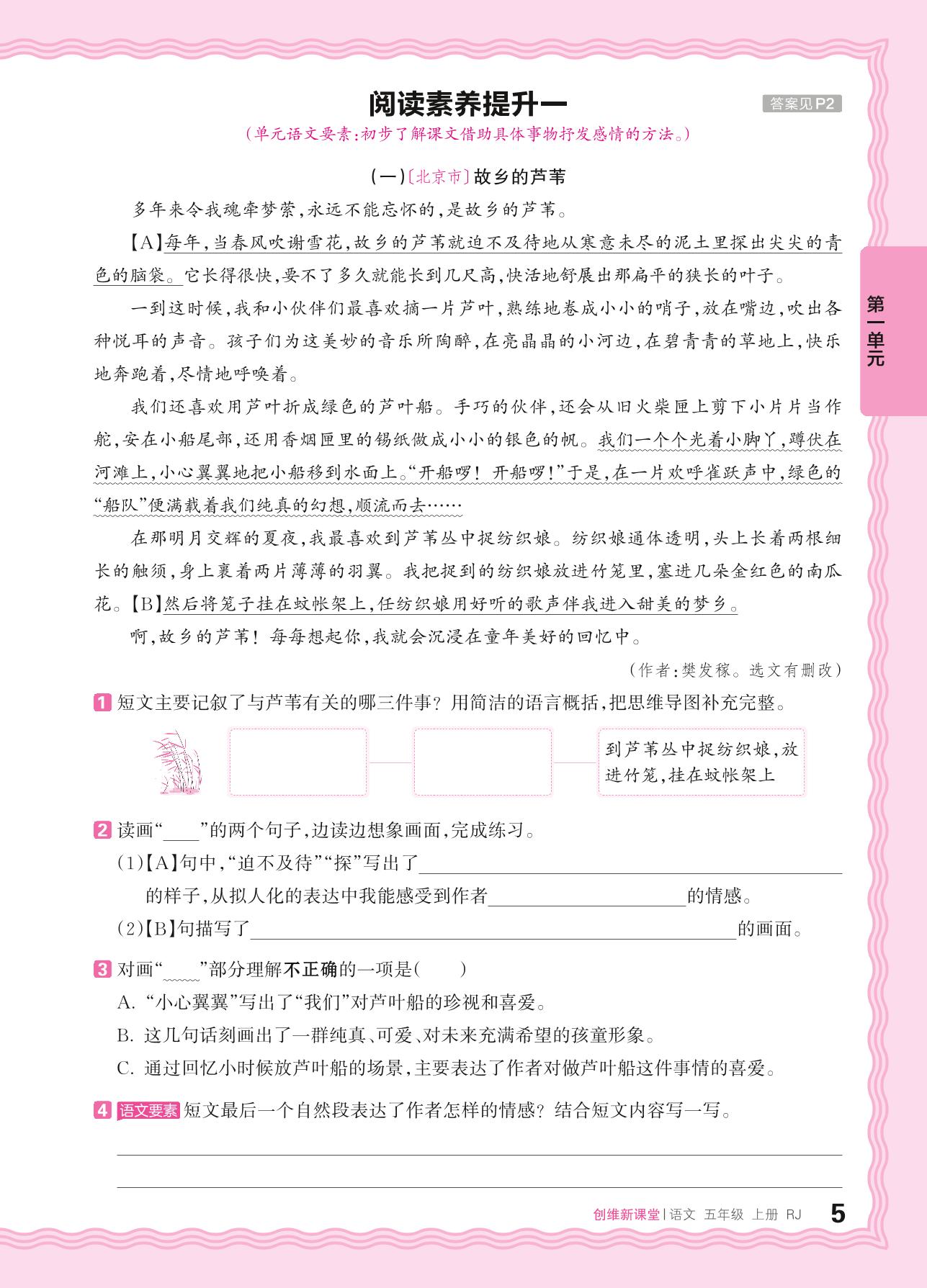 2024秋上册五年级语文人教版 第一单元 万物有灵——阅读素养提升一
