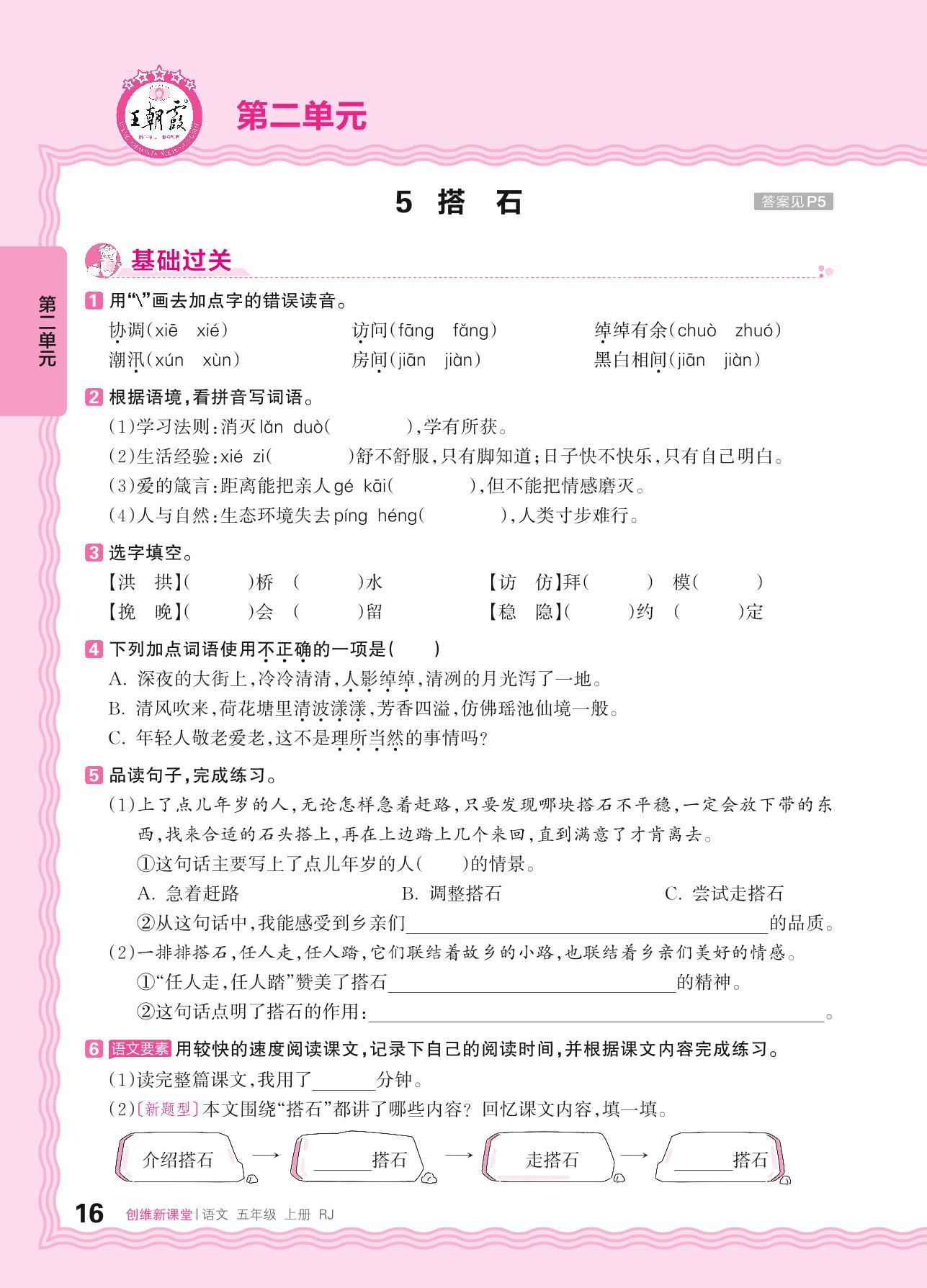 2024秋上册五年级语文人教版 第二单元 阅读策略——5. 搭石