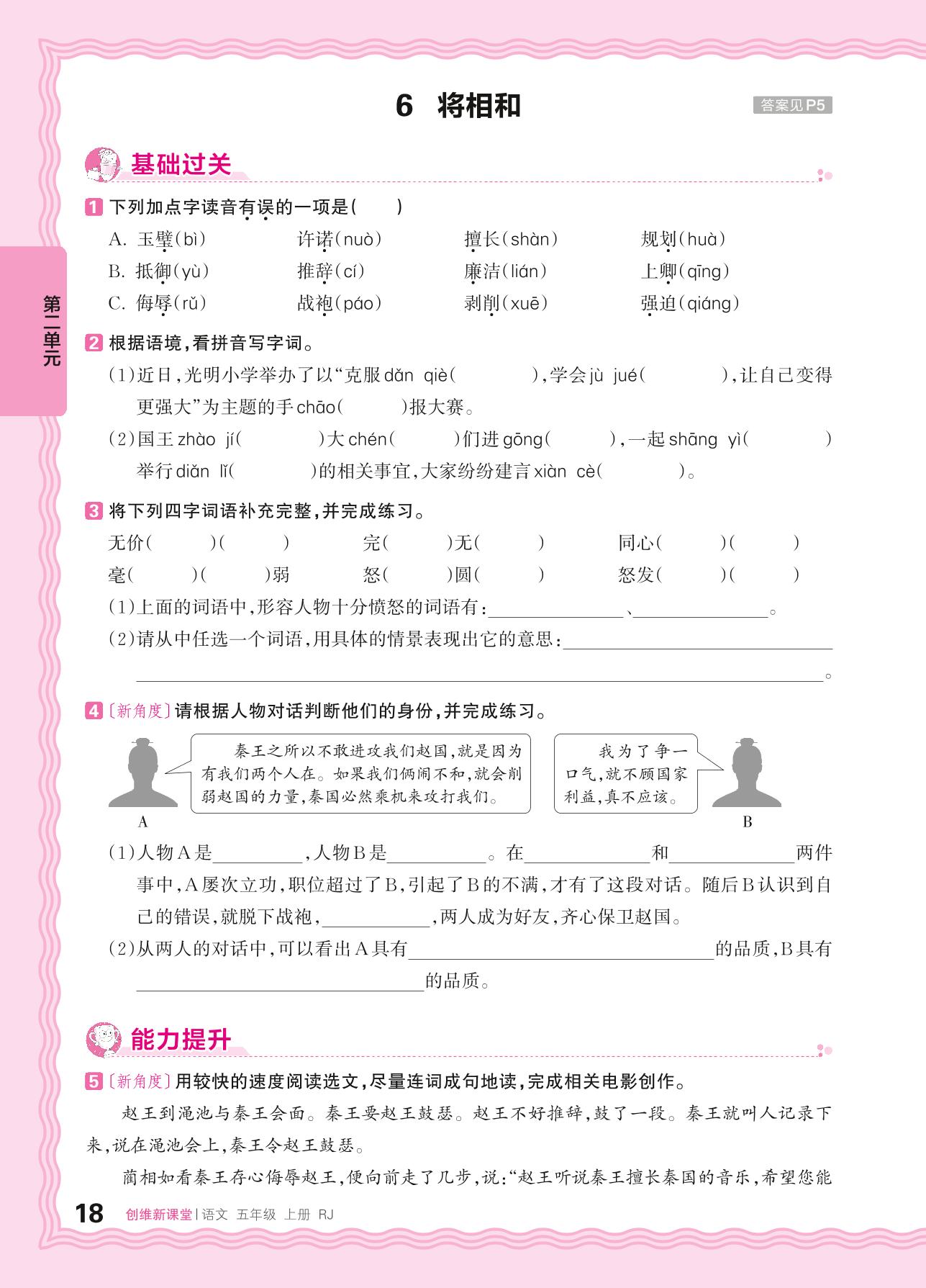 2024秋上册五年级语文人教版 第二单元 阅读策略——6. 将相和