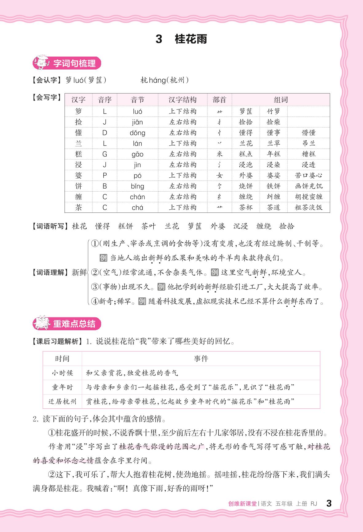 2024秋上册五年级语文人教版 助学手册 第一单元——3. 桂花雨