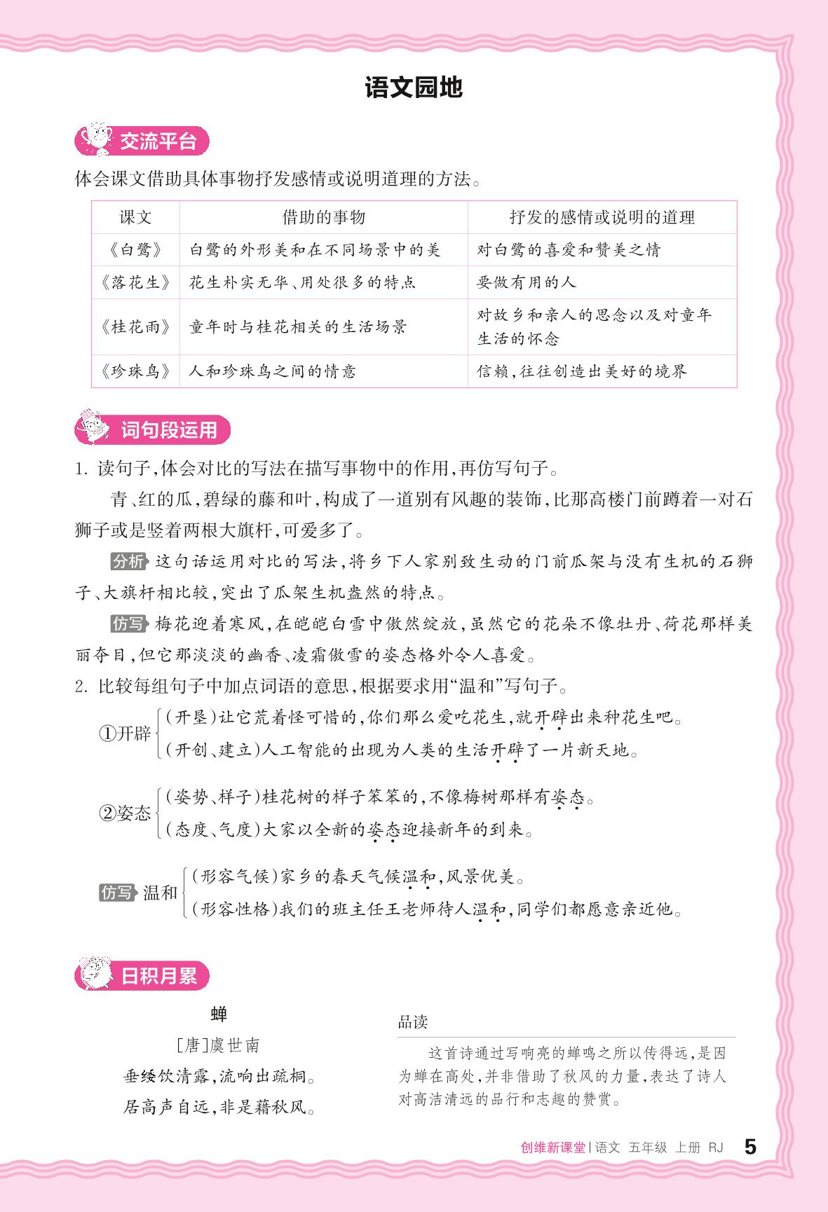 2024秋上册五年级语文人教版 助学手册 第一单元——语文园地