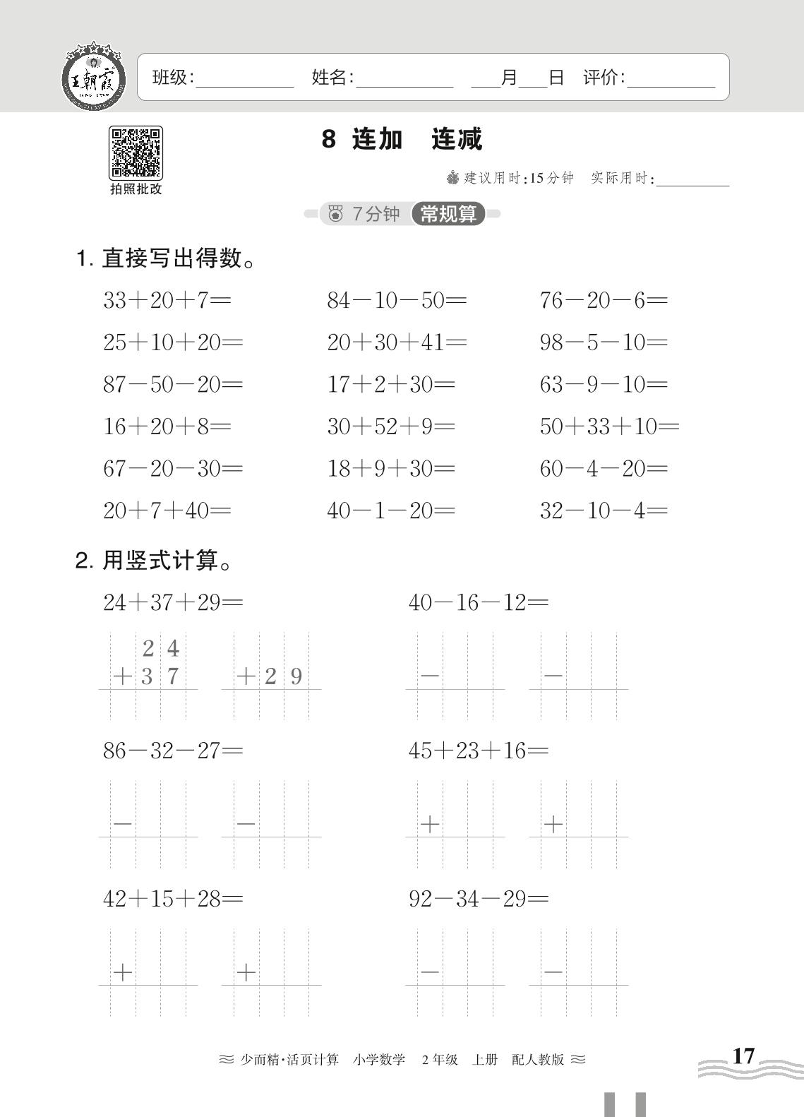 2024秋上册二年级数学人教版 第二单元 100以内的加法和减法(二)——8. 连加 连减