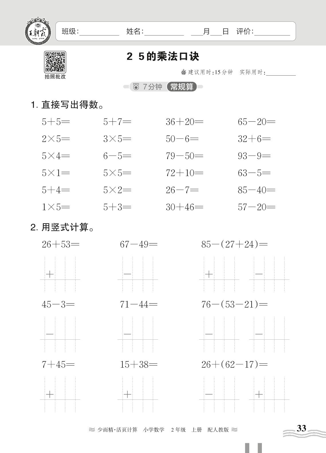 2024秋上册二年级数学人教版 第四单元 表内乘法(一)——2. 5的乘法口诀