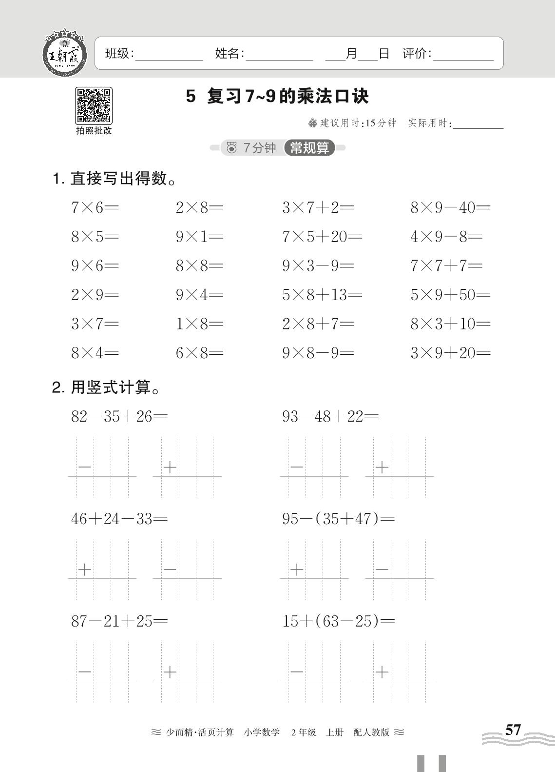 2024秋上册二年级数学人教版 第六单元 表内乘法(二)——5. 复习7~9的乘法口诀