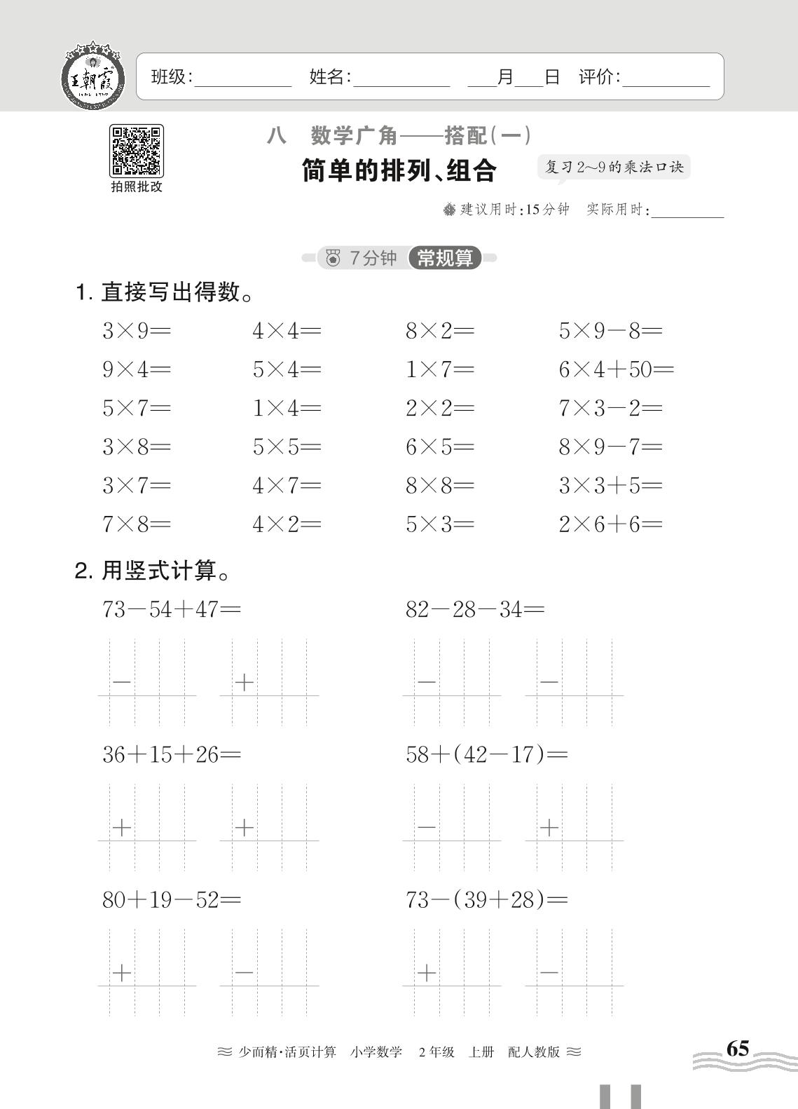 2024秋上册二年级数学人教版 第八单元 数学广角 搭配(一)——简单的排列、组合