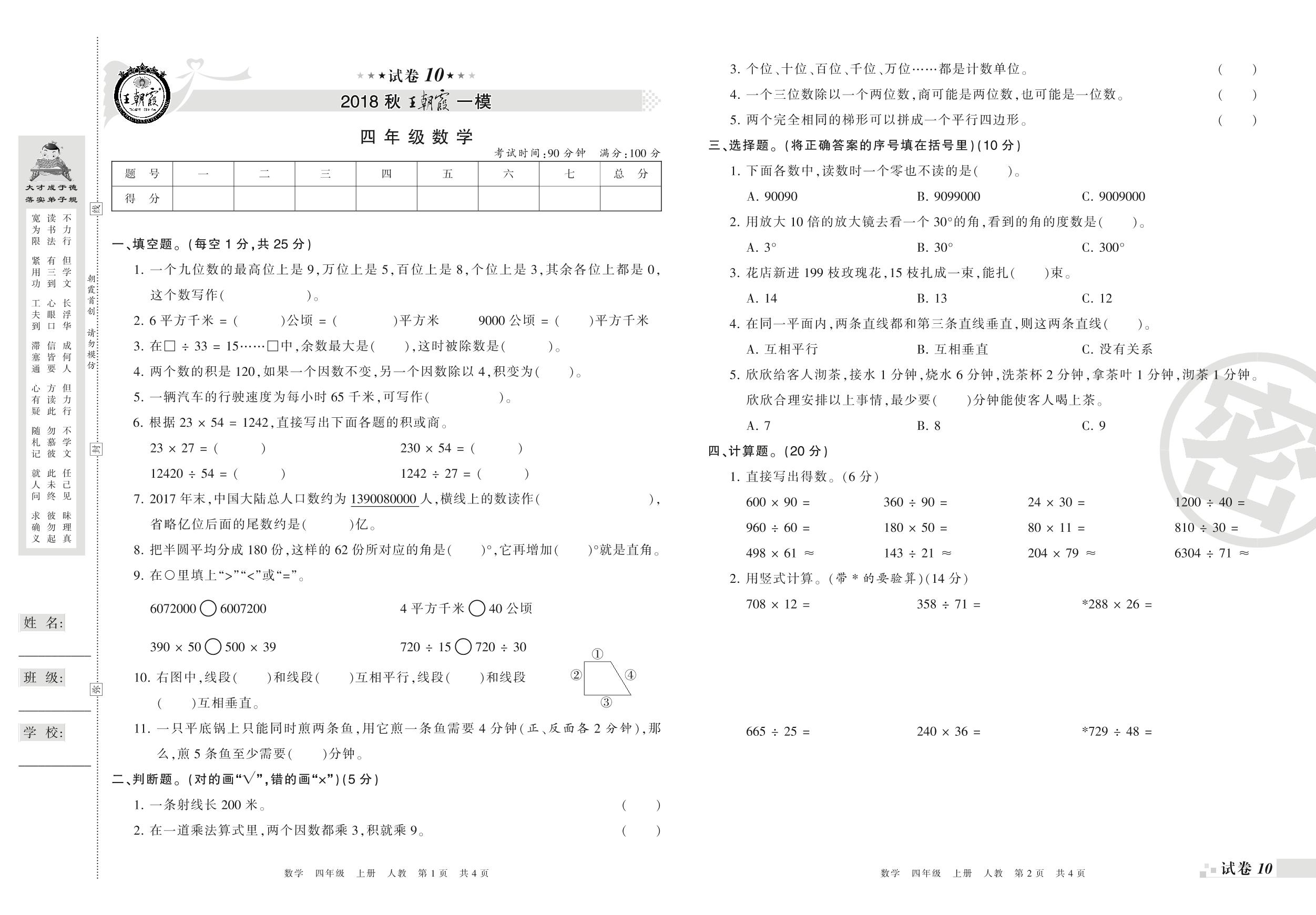 王朝霞期末模拟卷四年级上册数学(人教版)_R210804154941【10】