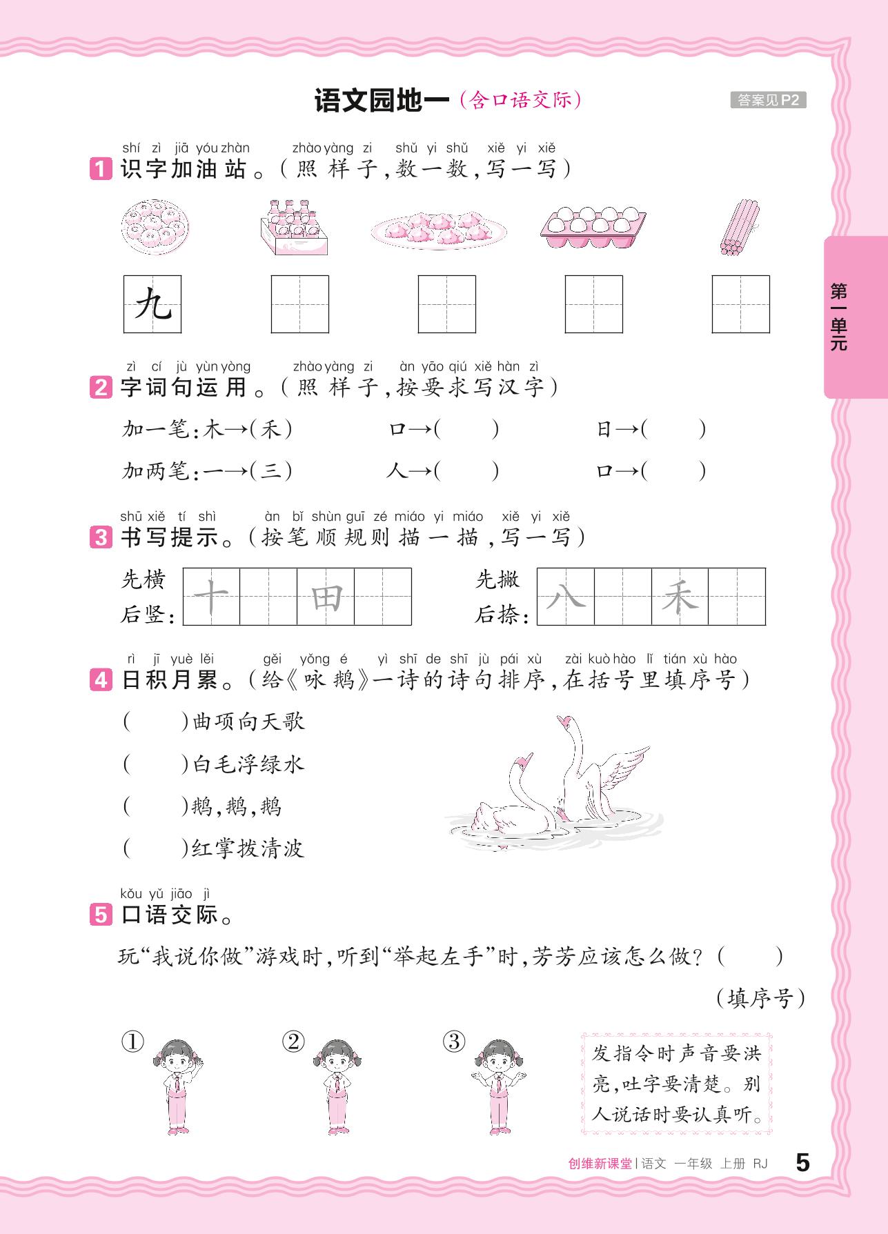 2024秋上册一年级语文人教版 第一单元 识字——语文园地一