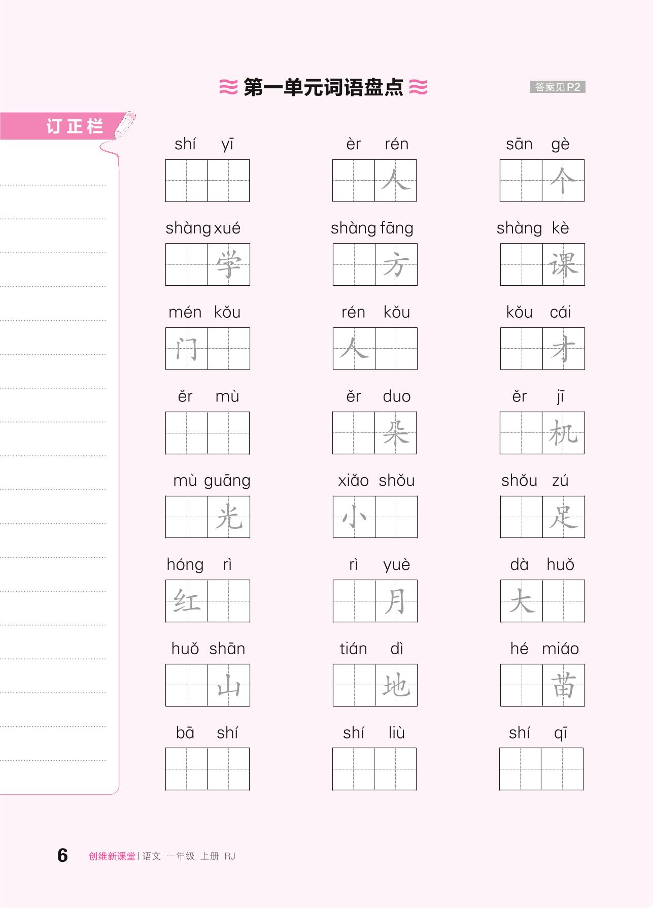 2024秋上册一年级语文人教版 第一单元词语盘点