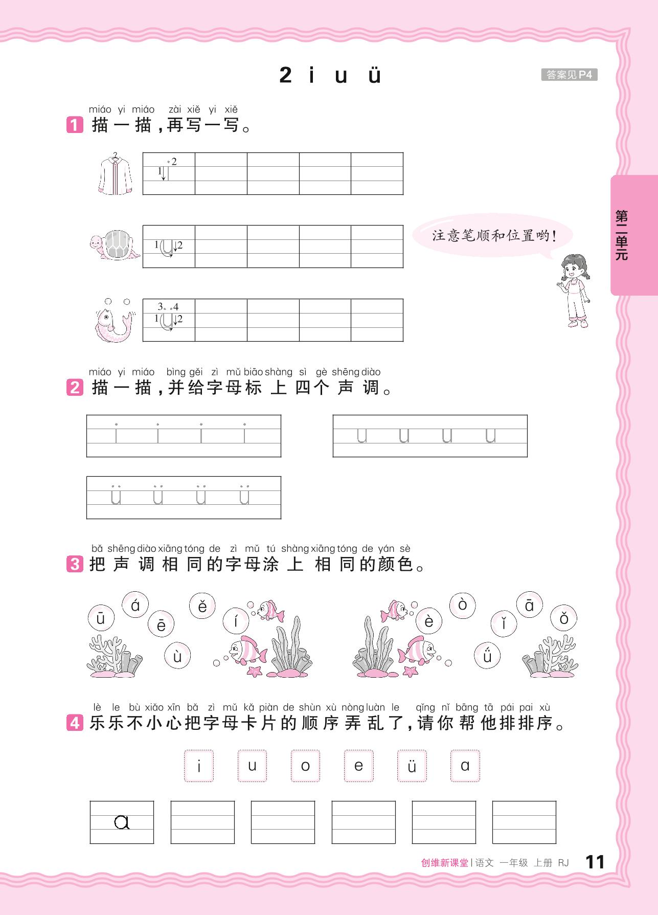 2024秋上册一年级语文人教版 第二单元 汉语拼音——2. i u ü_R240819103140806