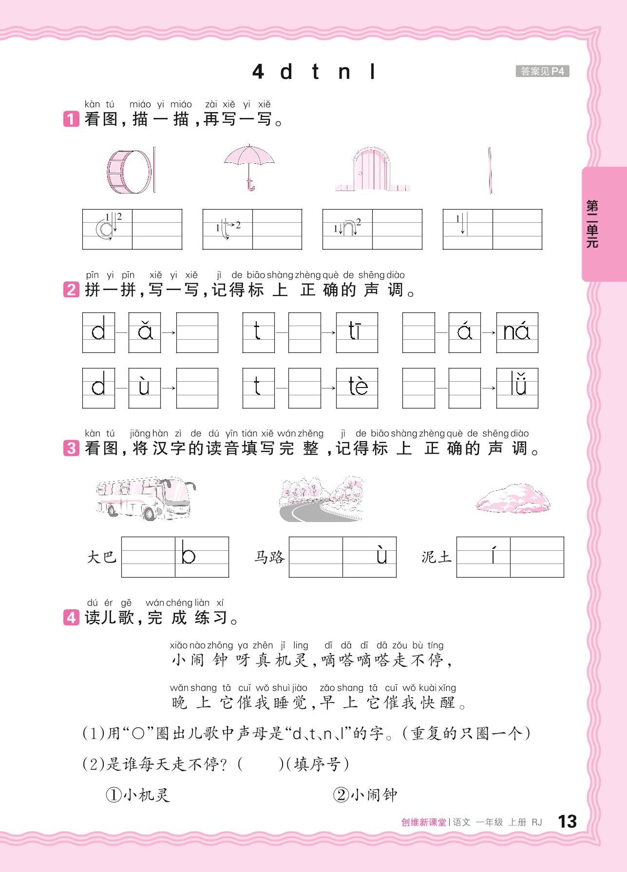 2024秋上册一年级语文人教版 第二单元 汉语拼音——4. d t n l_R240819103141094