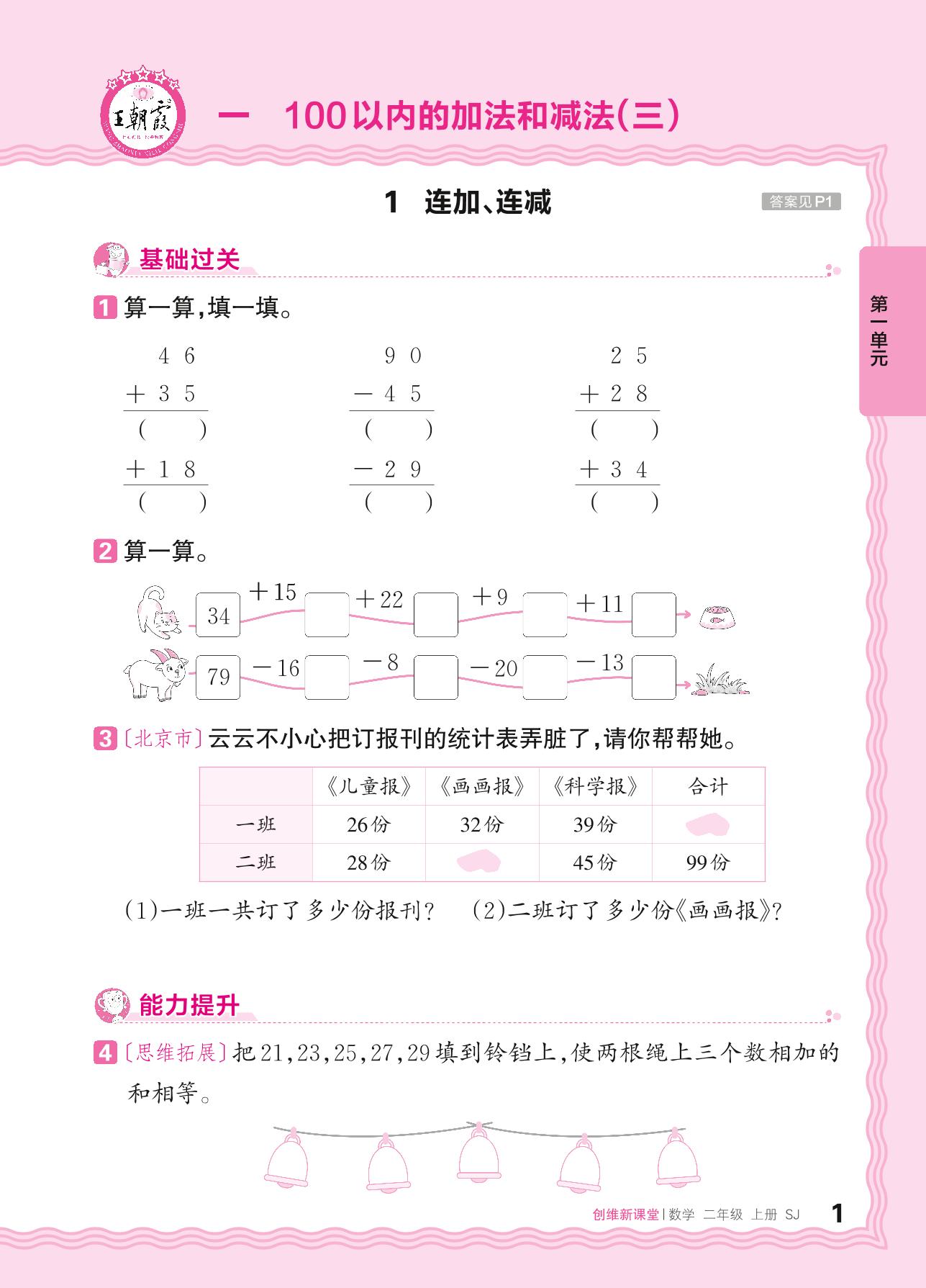 2024秋上册二年级数学苏教版 第一单元 100以内的加法和减法(三)——1. 连加、连减