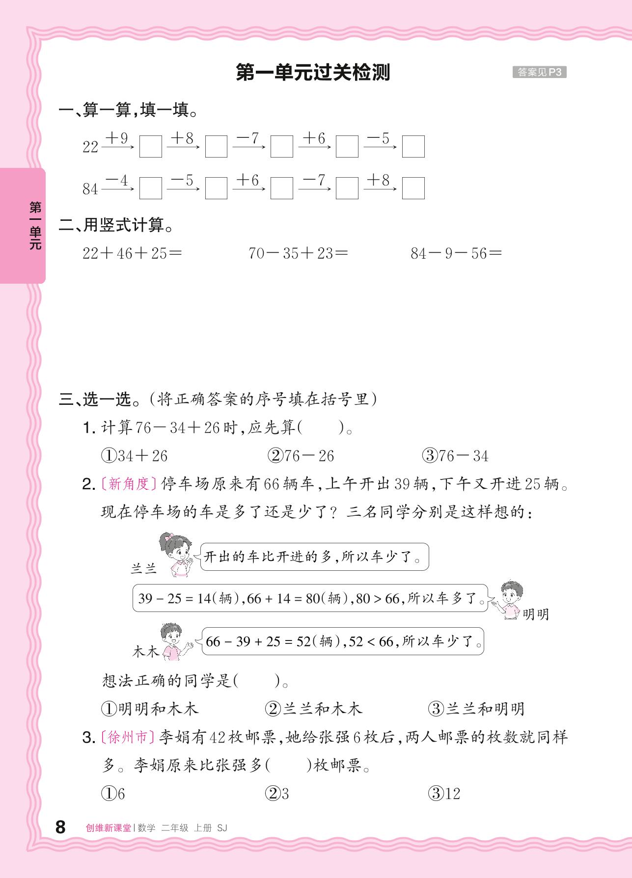 2024秋上册二年级数学苏教版 第一单元过关检测