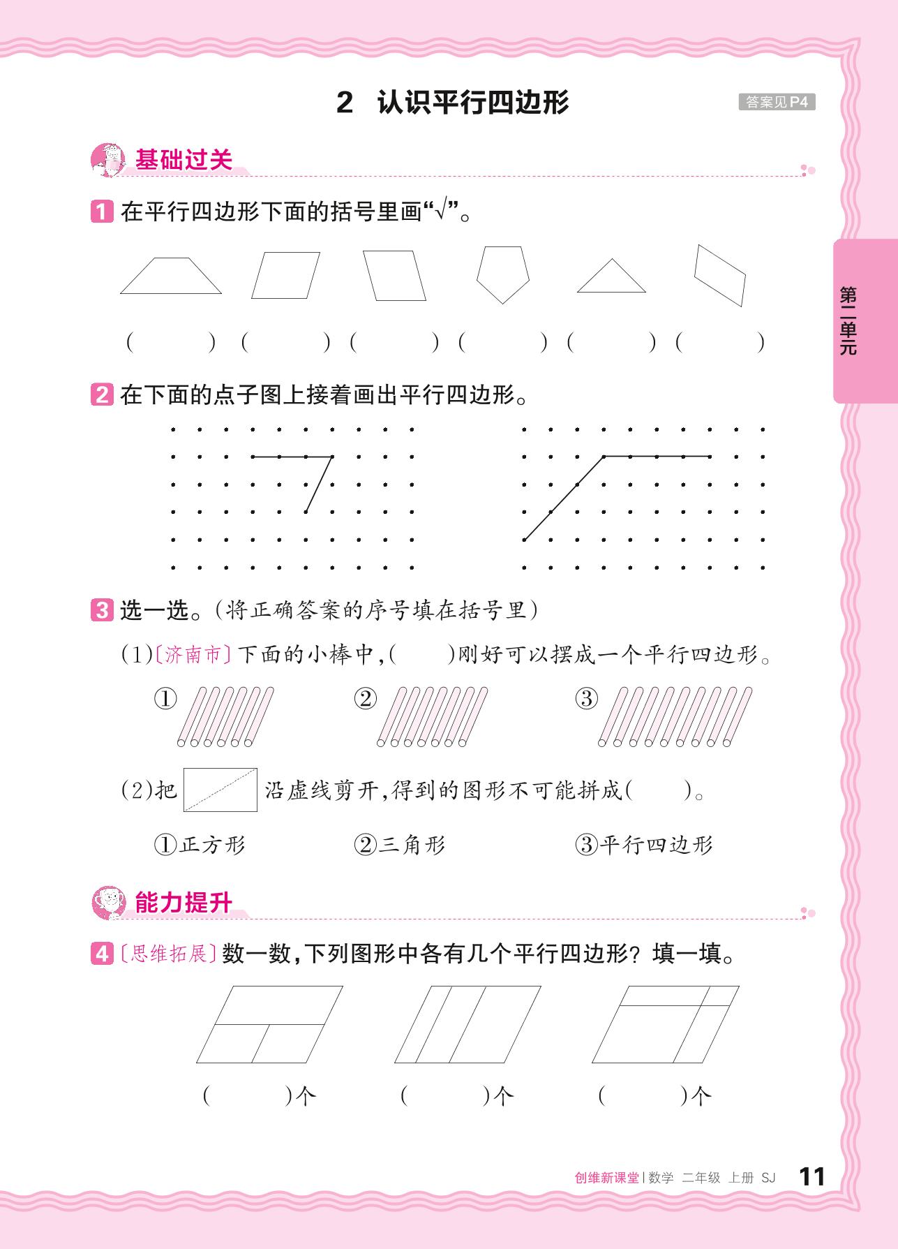 2024秋上册二年级数学苏教版 第二单元 平行四边形的初步认识 ——2. 认识平行四边形