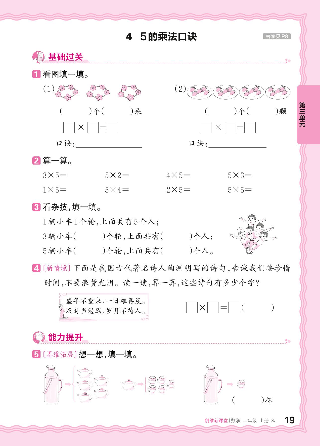 2024秋上册二年级数学苏教版 第三单元 表内乘法(一)——4. 5的乘法口诀
