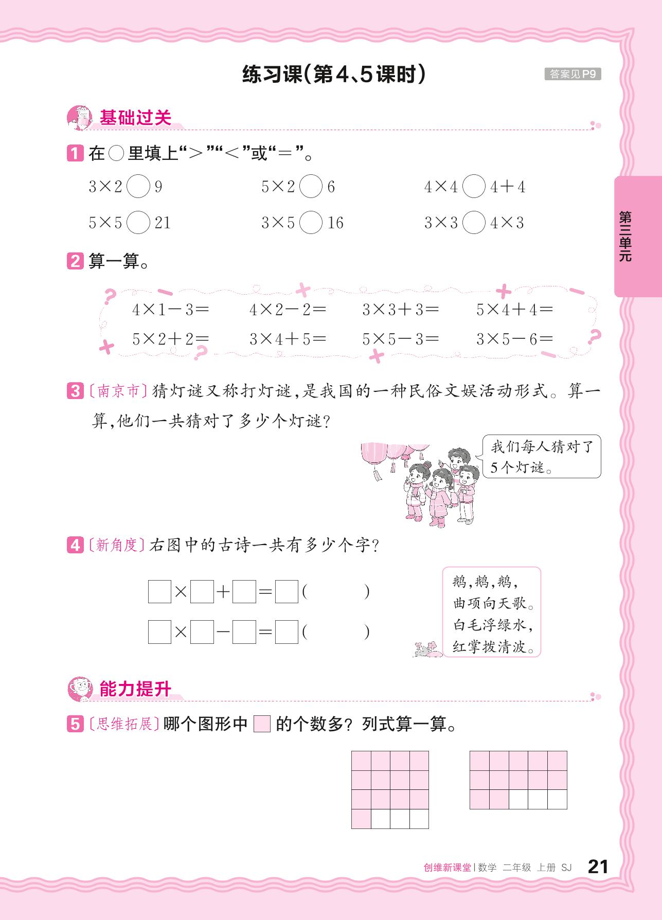 2024秋上册二年级数学苏教版 第三单元 表内乘法(一)——5的乘法口诀和乘加、乘减练习课