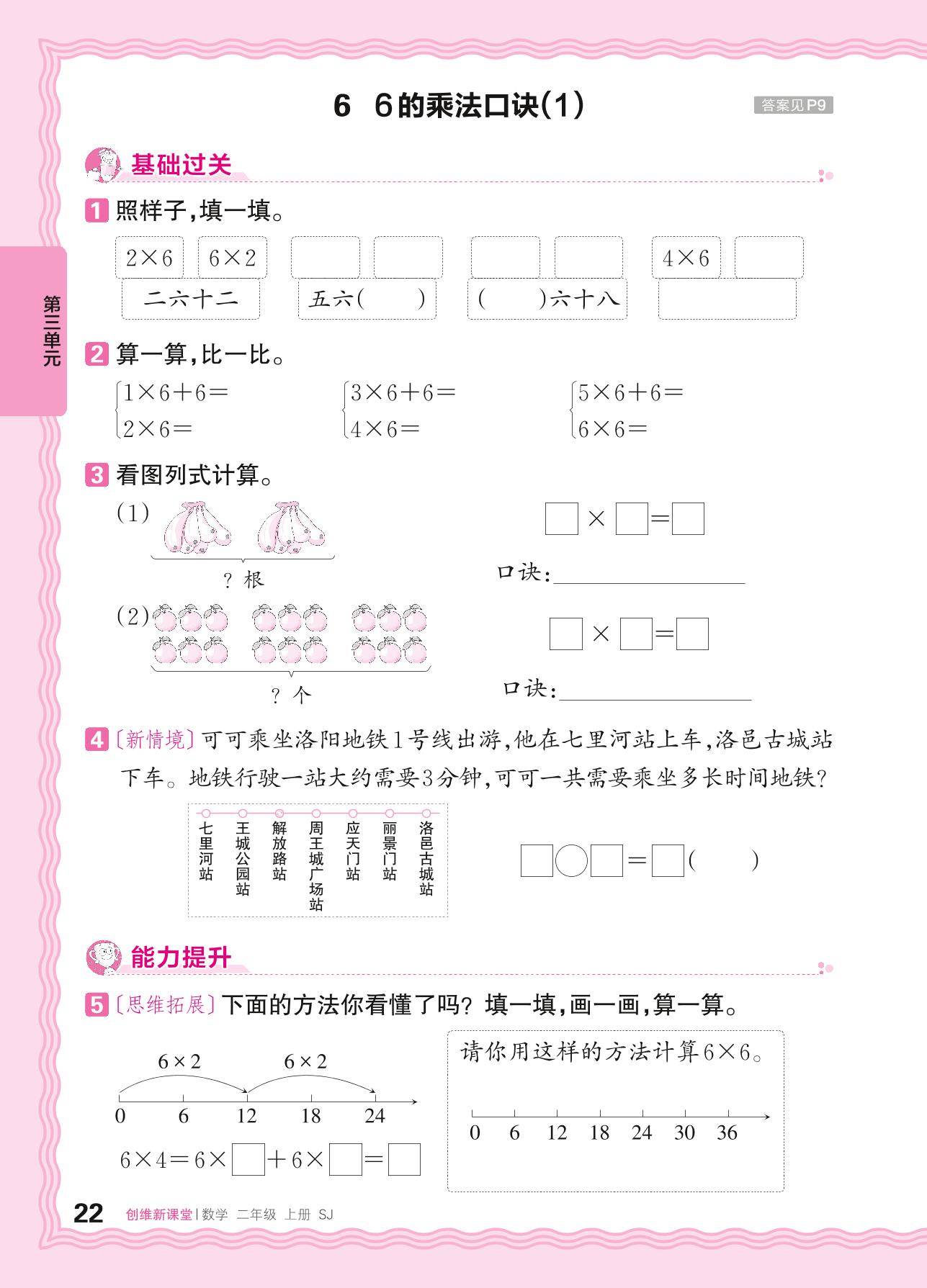 2024秋上册二年级数学苏教版 第三单元 表内乘法(一)——6. 6的乘法口诀(1)