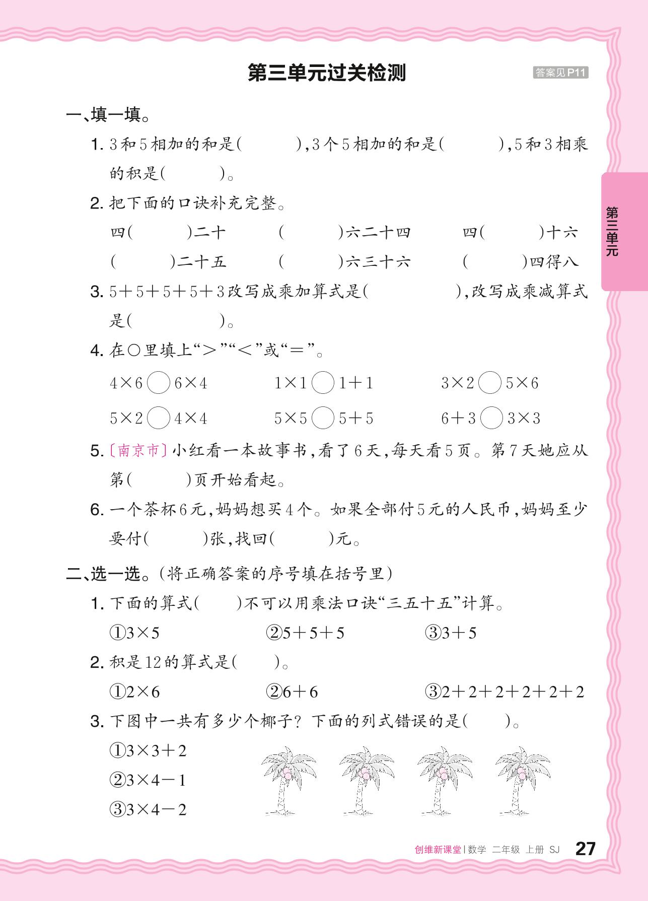 2024秋上册二年级数学苏教版 第三单元过关检测