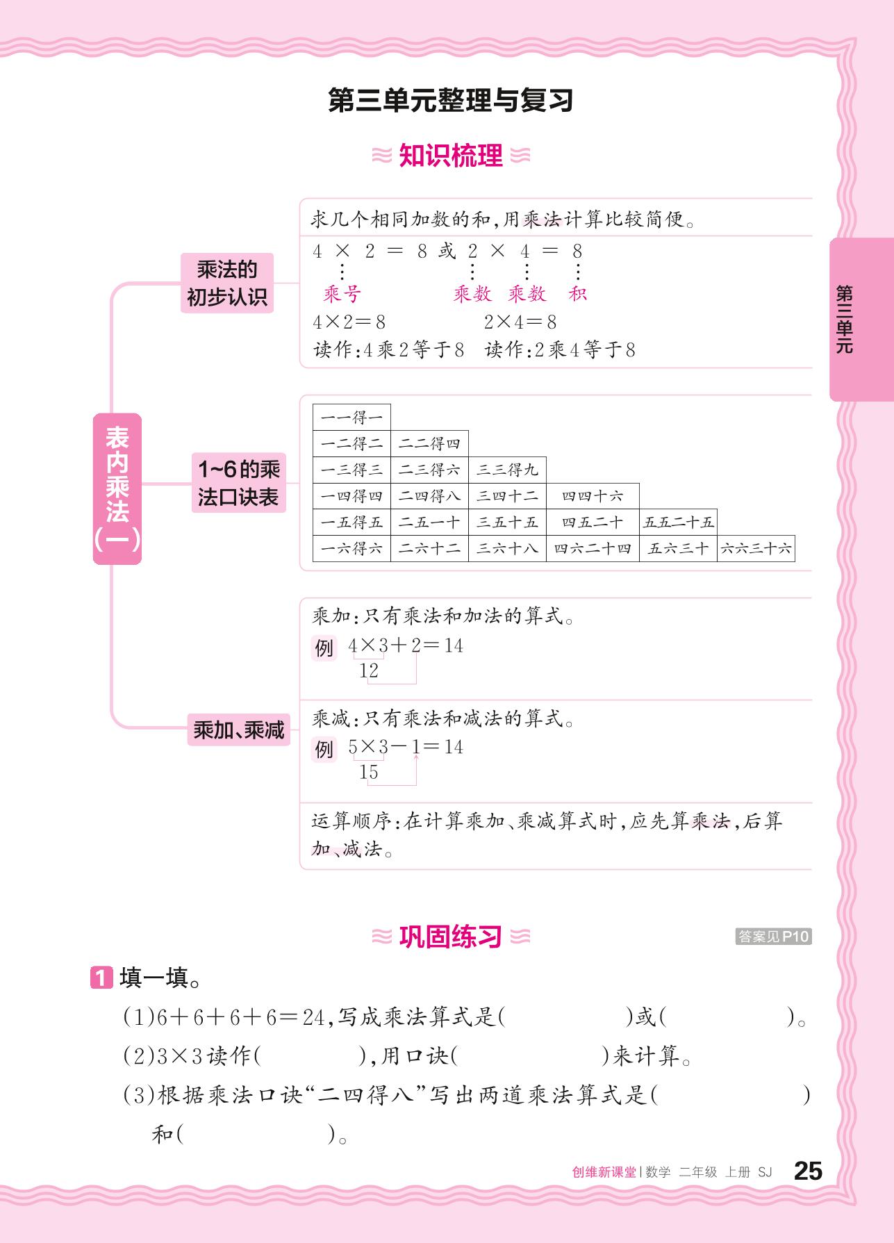 2024秋上册二年级数学苏教版 第三单元整理与复习