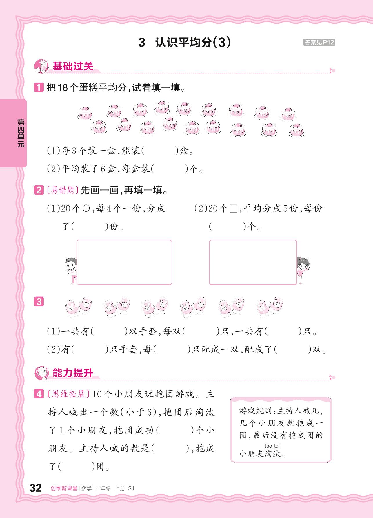 2024秋上册二年级数学苏教版 第四单元 表内除法(一)——3. 认识平均分(3)