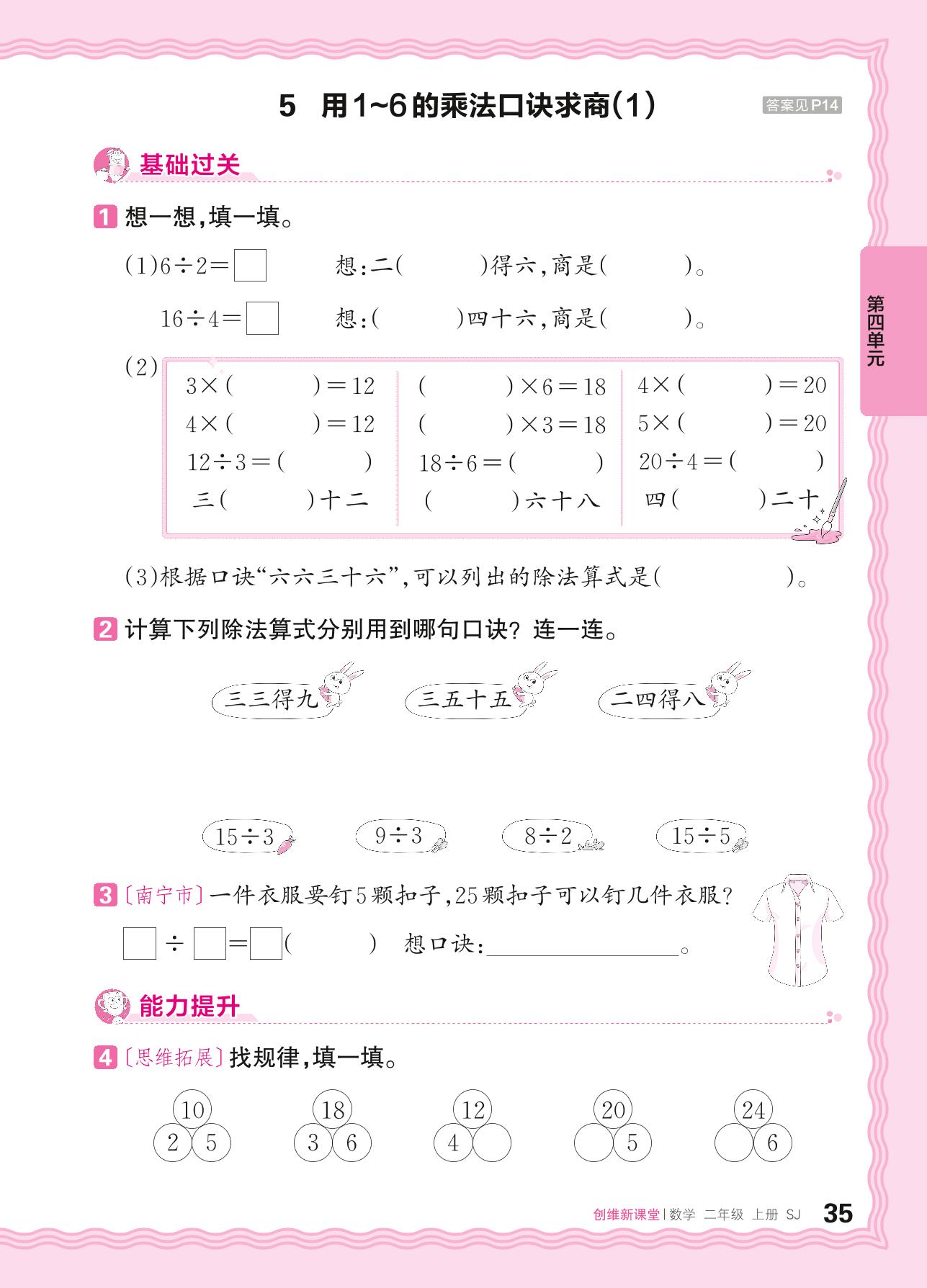 2024秋上册二年级数学苏教版 第四单元 表内除法(一)——5. 用1~6的乘法口诀求商(1)