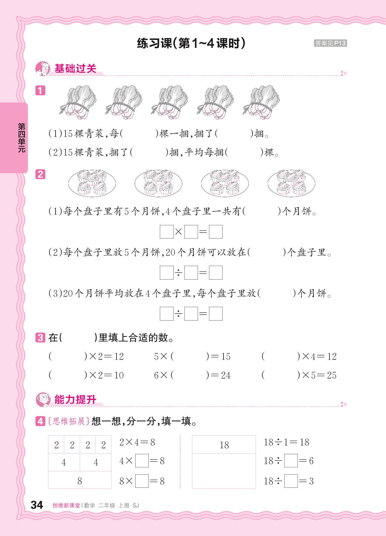 2024秋上册二年级数学苏教版 第四单元 表内除法(一)——认识平均分、除法的初步认识练习课