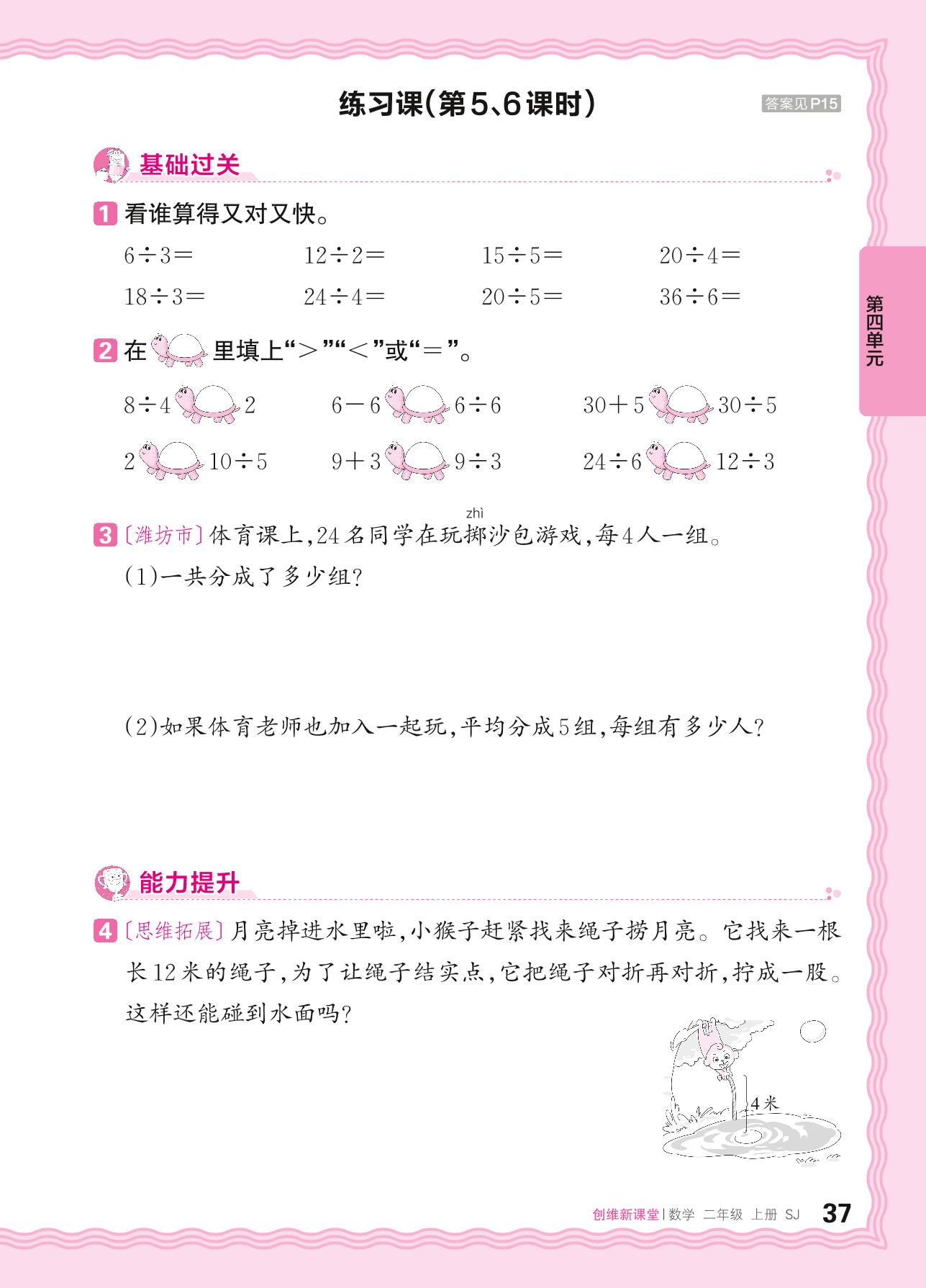 2024秋上册二年级数学苏教版 第四单元 表内除法(一)——用1~6的乘法口诀求商练习课