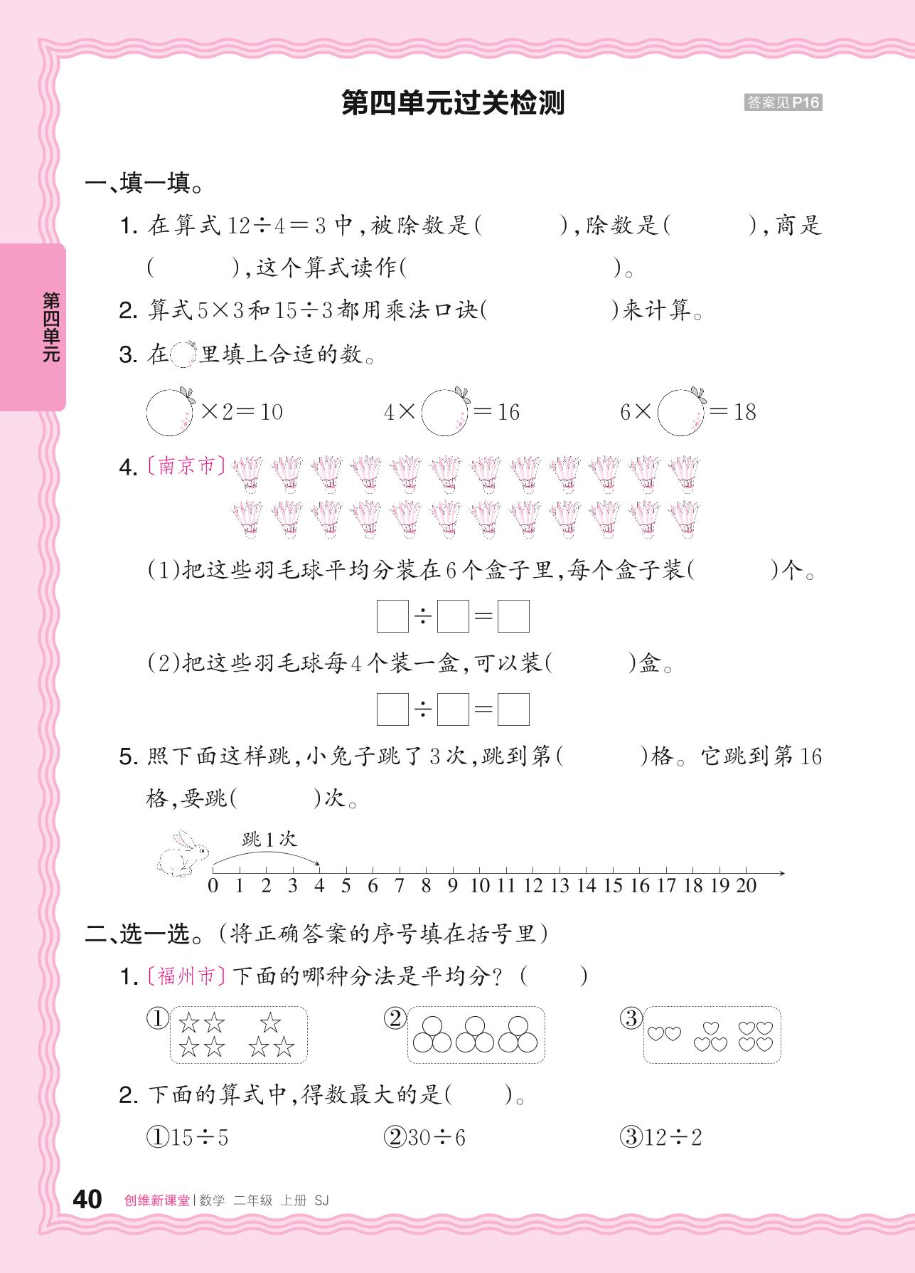 2024秋上册二年级数学苏教版 第四单元过关检测