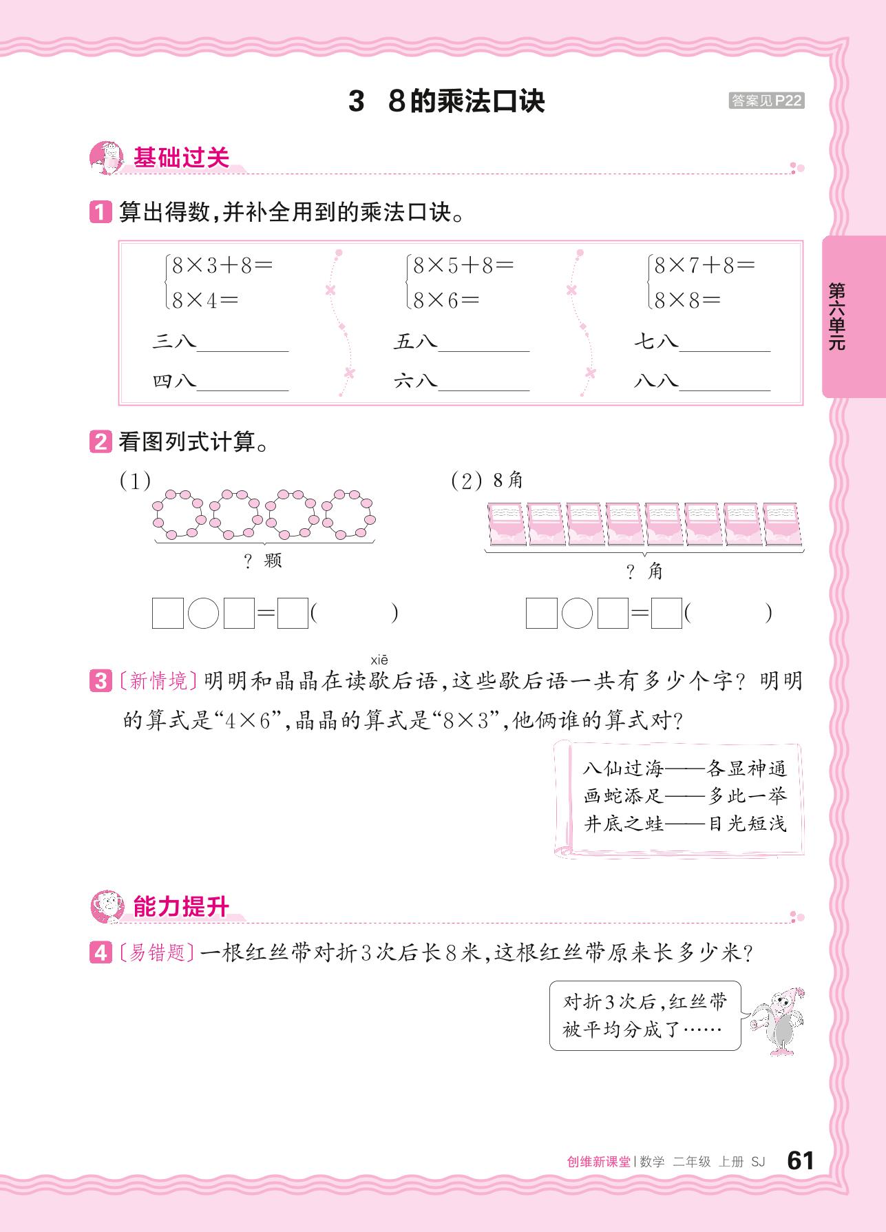 2024秋上册二年级数学苏教版 第六单元 表内乘法和表内除法(二)——3. 8的乘法口诀