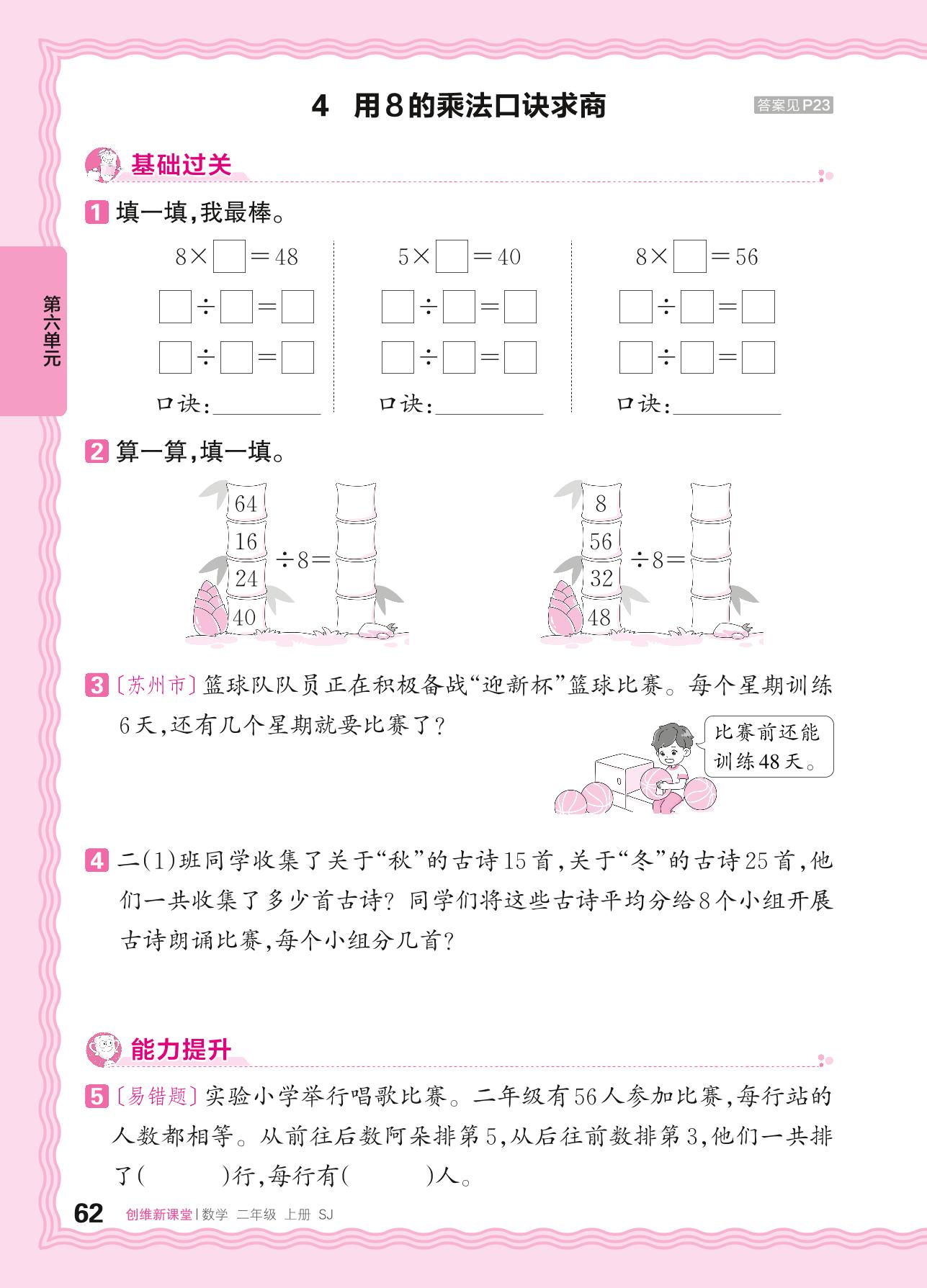 2024秋上册二年级数学苏教版 第六单元 表内乘法和表内除法(二)——4. 用8的乘法口诀求商