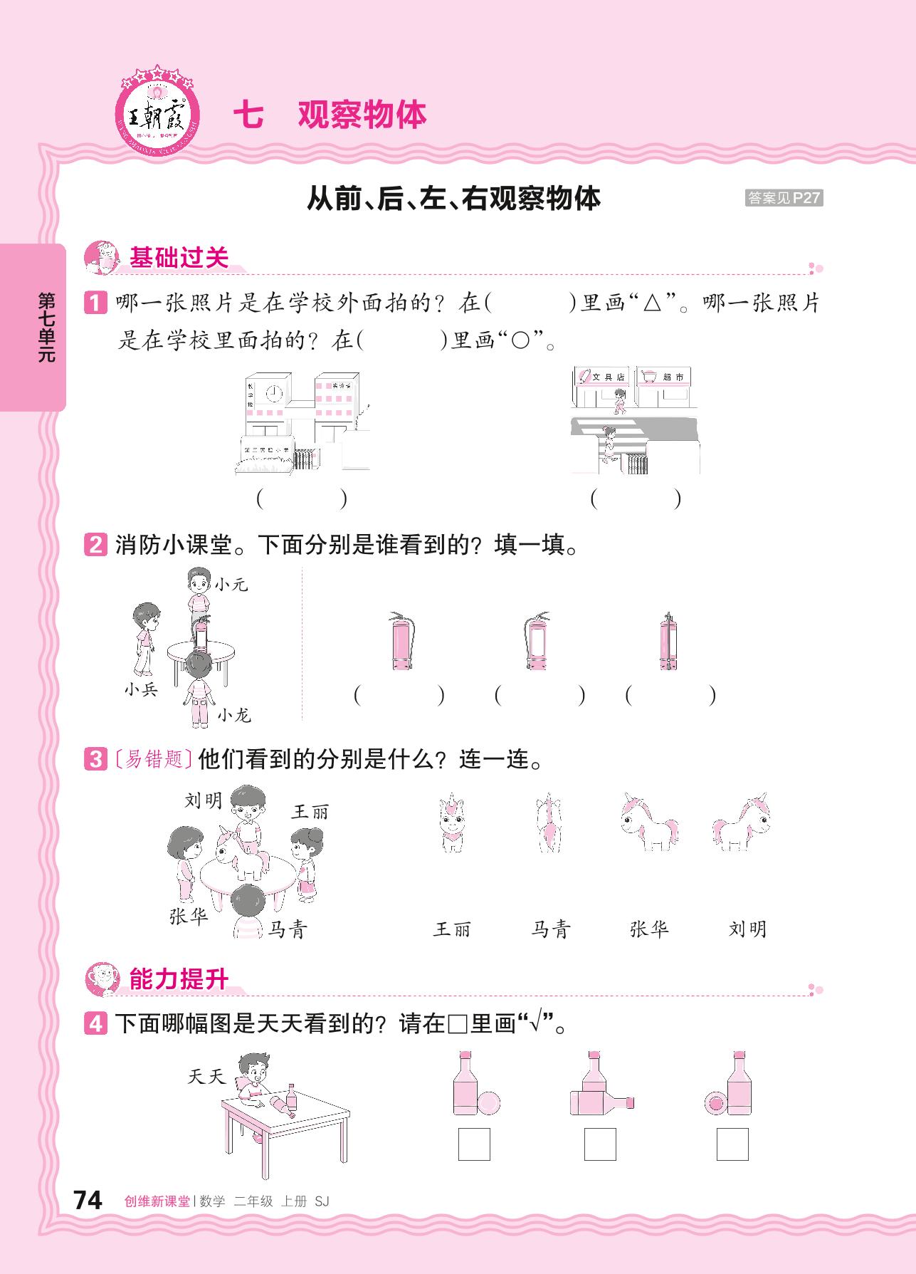 2024秋上册二年级数学苏教版 第七单元 观察物体——从前、后、左、右观察物体