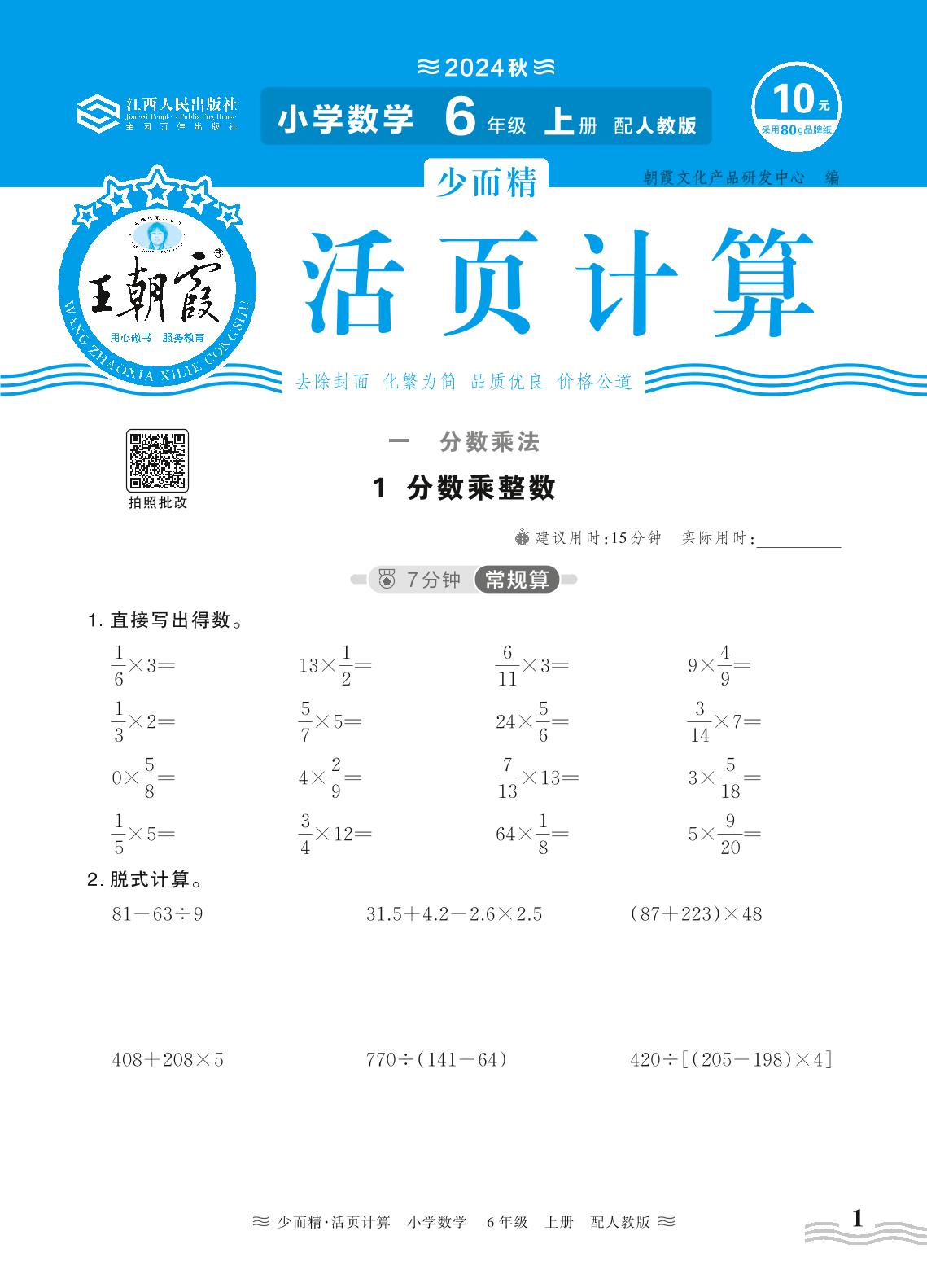 2024秋上册六年级数学人教版 第一单元 分数乘法——1. 分数乘整数