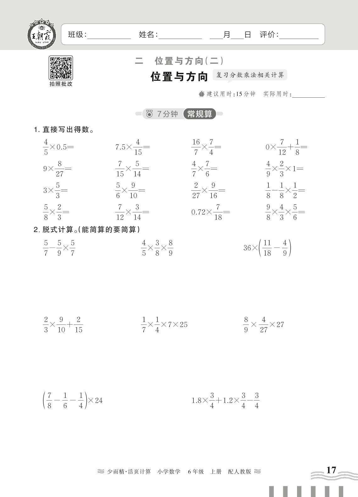 2024秋上册六年级数学人教版 第二单元 位置与方向(二)——位置与方向