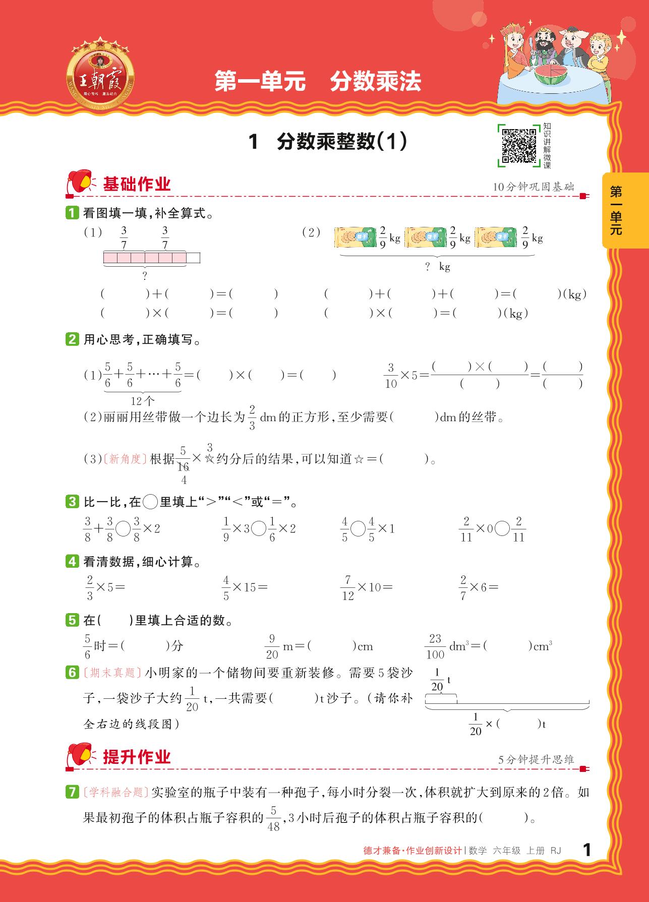 2024秋上册六年级数学人教版 第一单元 分数乘法——1. 分数乘整数(1)_R240819104639924