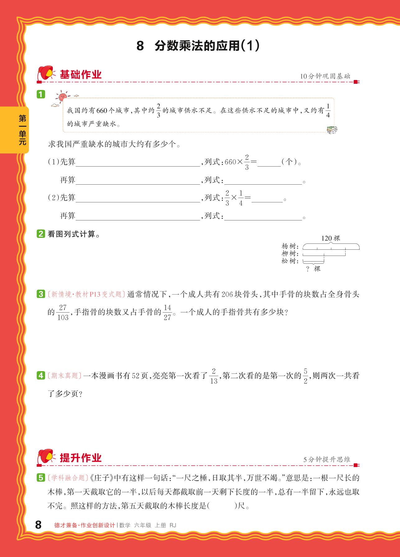 2024秋上册六年级数学人教版 第一单元 分数乘法——8. 分数乘法的应用(1)